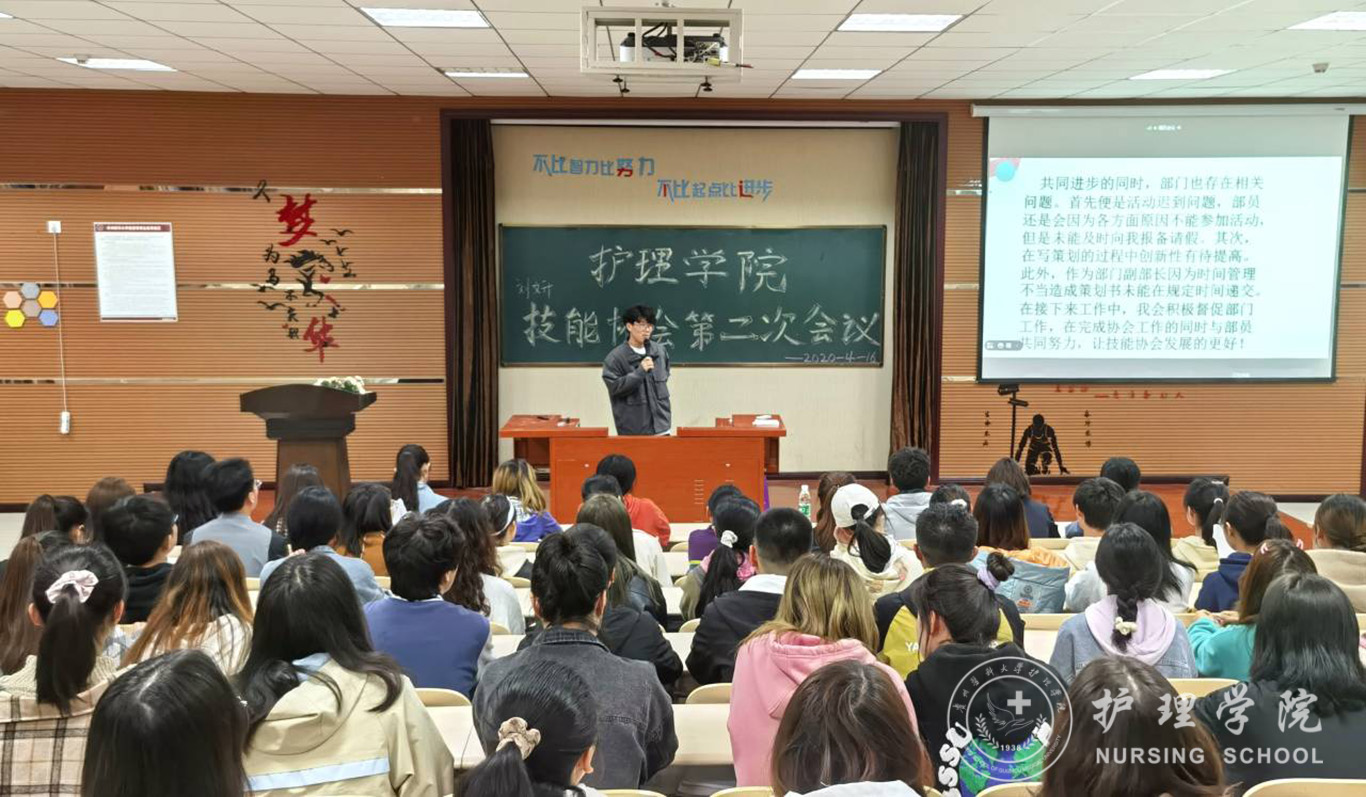 4月16日,为增强协会成员的凝聚力,促进协会的整体发展,太阳集团tyc9728护理技能协会于百川楼1101教室召开了本学期第二次例会,本次会议由副会长胡锦久主持,辅导员刘妍及协会全体成员参会。