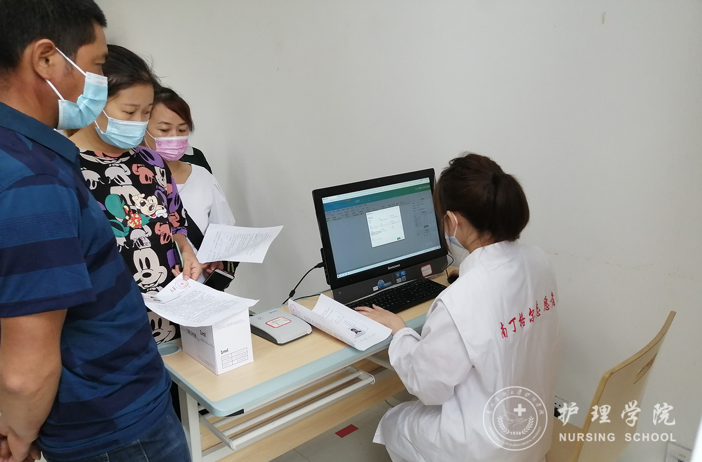在医院老师的带领下首先了解学习各科室临床专科疾病性质、相关规章制度和日常护理工作职责。起初在面对患者的时候,志愿者们也会紧张、手足无措,但同学们对知识的探索和渴求使他们没有退缩,克服了困难,主动向有经验的护士老师学习,通过多次志愿服务,对医院工作越来越熟悉,面对患者也不再紧张。尤其是对前来医院接种新冠疫苗的居民,志愿者们发挥出他们护理专业特长,耐心细致地解答接种者的各种问题,传播新冠肺炎的相关防控知识,用自己的专业知识,把温暖传递给需要的人。