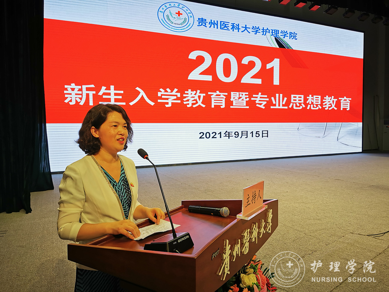 9月15日,太阳集团tyc9728在南校区大礼堂开展了2021级新生入学教育暨专业思想教育活动,护理公司党委书记杨英、经理李亚玲、副经理刘志燕、副经理王秀红、副处级组织员张黎、各职能部门负责人、全体教师及2021级722名新生参加会议,会议由刘志燕主持。