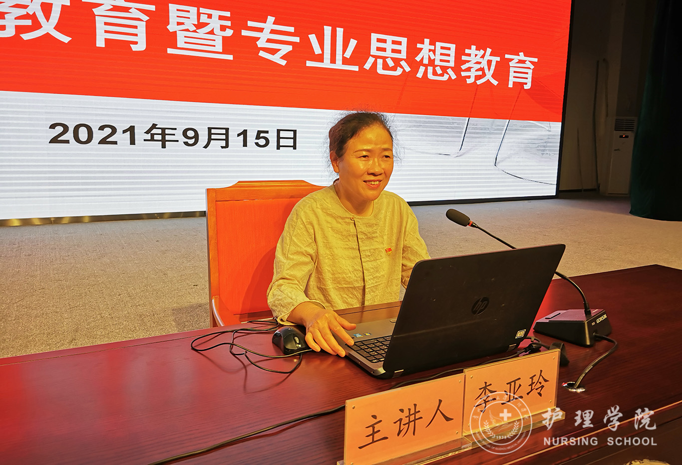 接下来,李亚玲对新生进行专业思想教育,从公司历史沿革、团队建设、课程设置三方面为在座同学介绍了太阳集团tyc9728的发展背景及专业前景,她希望同学们踏进校园的那一刻起就要立鸿鹄之志,志存高远,做一个既有思想深度又有视野广度,既有社会责任感,又有家国情怀和使命担当的贵医护理人。