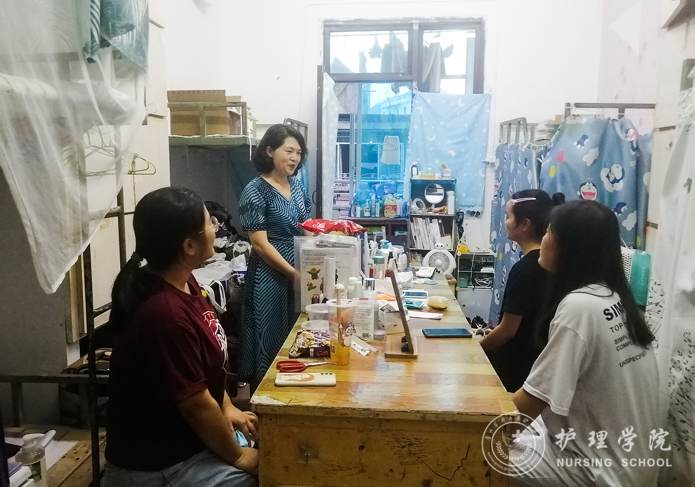 首先刘志燕和李杏春查看了楼道消防、寝室水电门窗等,对同学们进行了安全教育。接着刘志燕深入了解了同学们的实习情况,告诉同学们在实习和生活中遇到任何问题都可以主动向老师反馈,老师们会尽力为同学们分析解决问题。希望同学们认真完成实习,努力提升自身综合能力,为就业做好准备,树立“先就业再择业”及“多元化”就业观,并为同学们分析了就业方面的前景,同时鼓励同学们继续读研深造。最后刘志燕强调:一定要遵守国家和公司疫情防控规定,国庆期间,减少外出,能不出省就不出省,遵守各实习医院的假期实习管理规定。