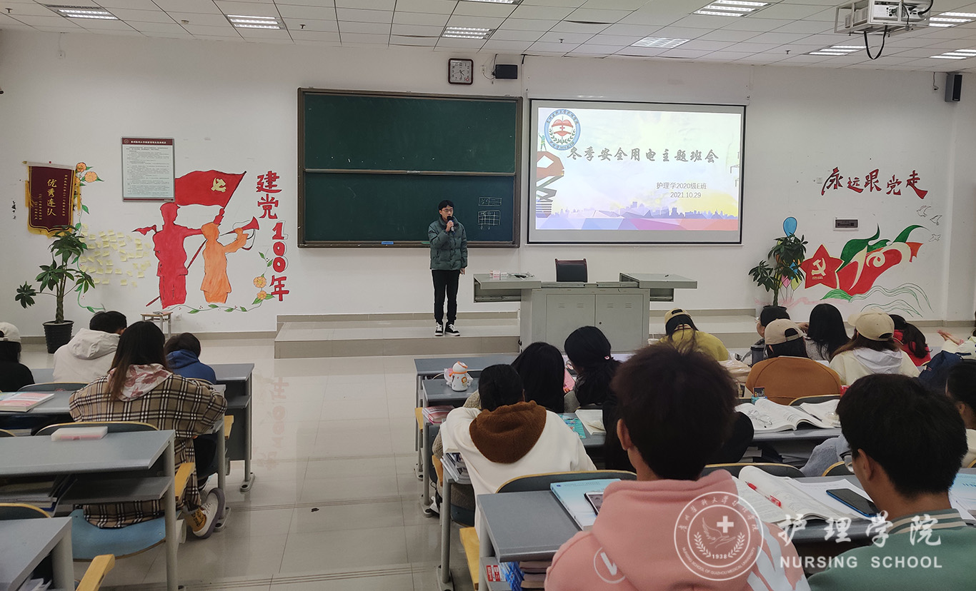 此次班会主要围绕着冬季用电安全展开,从“冬季为什么要特别注意用电安全”“冬季如何安全用电”“警醒事例”“因用电不当引起火灾时应该怎么办”四个方面给同学们进行讲解,主讲人提醒全体同学不能在宿舍使用“三无”产品、劣质产品和自制的用电设备,严禁在寝室使用大功率电器,严禁私自更换宿舍内电路设备上的任何装置,严禁破环楼内的供电线槽和供电电缆等。同时,班会中,主讲人还特别提醒同学们务必做到人离关灯、关电源,树立安全意识自觉做到安全用电,自觉维护集体财产和自身安全。