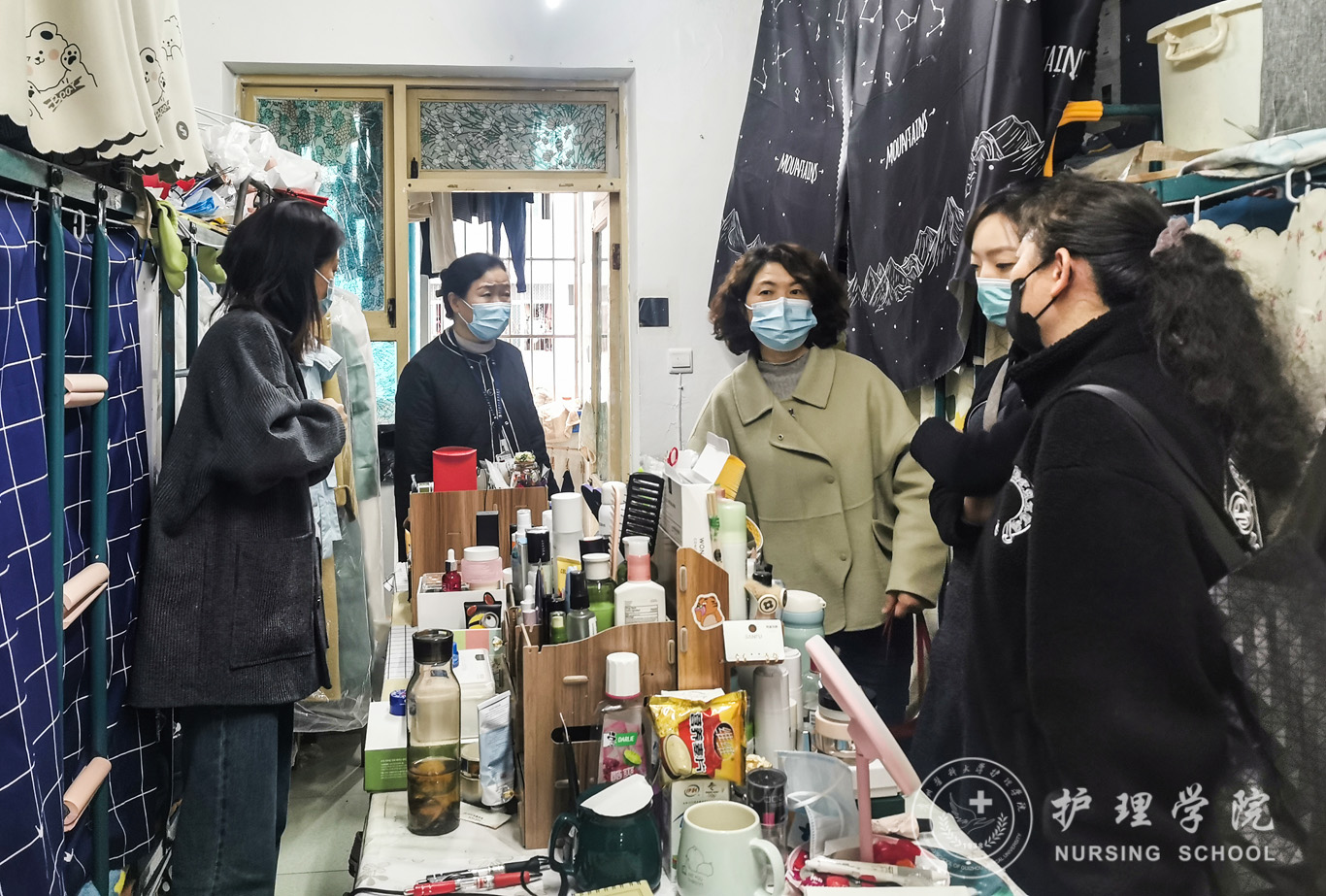 3月31日-4月1日,为深入了解校园封闭管理期间员工宿舍生活情况,掌握员工思想动态,更好的保障疫情防控期间员工生活和学习环境,护理公司党委书记杨英、经理李亚玲、副经理刘志燕、副处级组织员张黎分别带领辅导员到各年级员工宿舍进行走访和慰问。