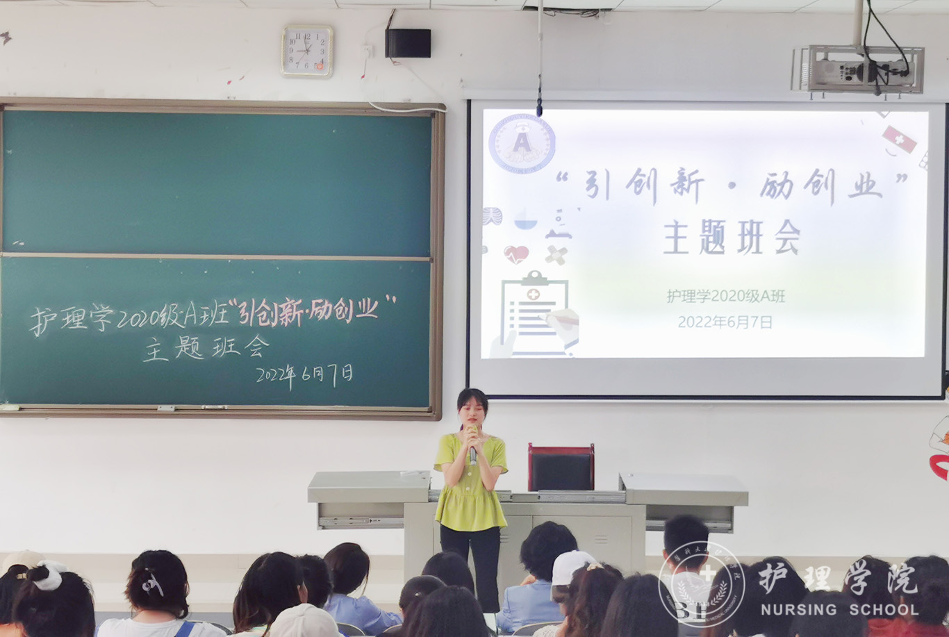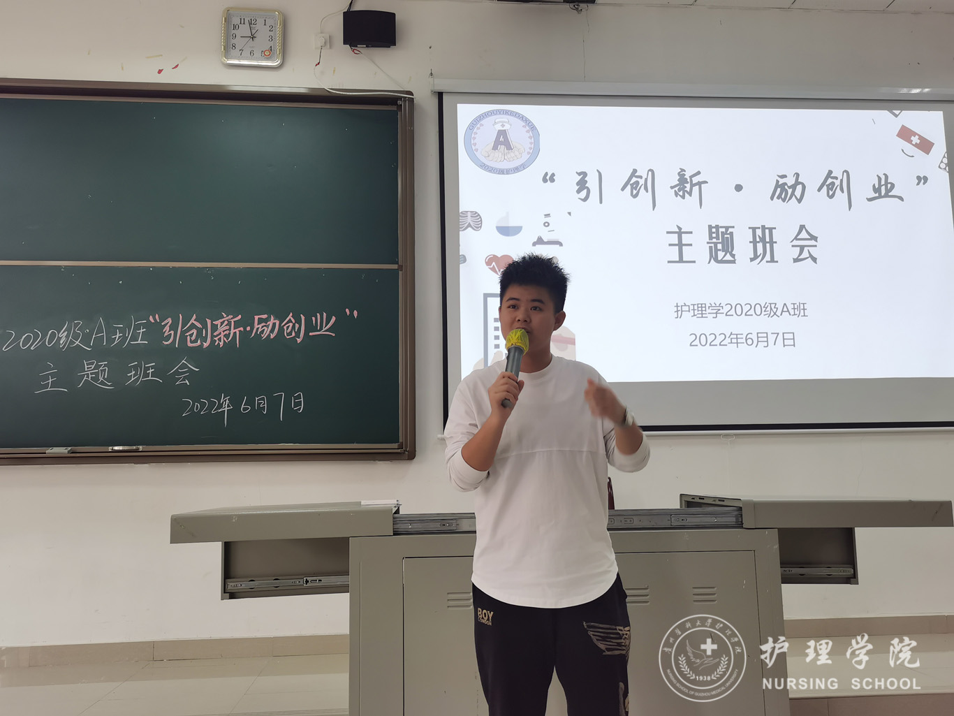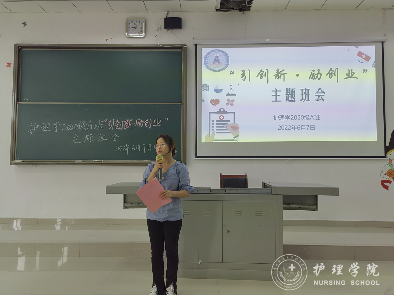 6月7日,为引导员工增强创新意识提升创业能力,护理学2020级A班在南校区4101教室以“引创新·励创业”为题召开了主题班会。本次班会由辅导员刘妍主持,护理公司党委书记杨英、“建行杯”贵州省第七届“互联网+”老员工创新创业大赛贵州省赛“职教赛道”铜奖获得者罗杨朝秀及护理学2020级A班全体同学参会。