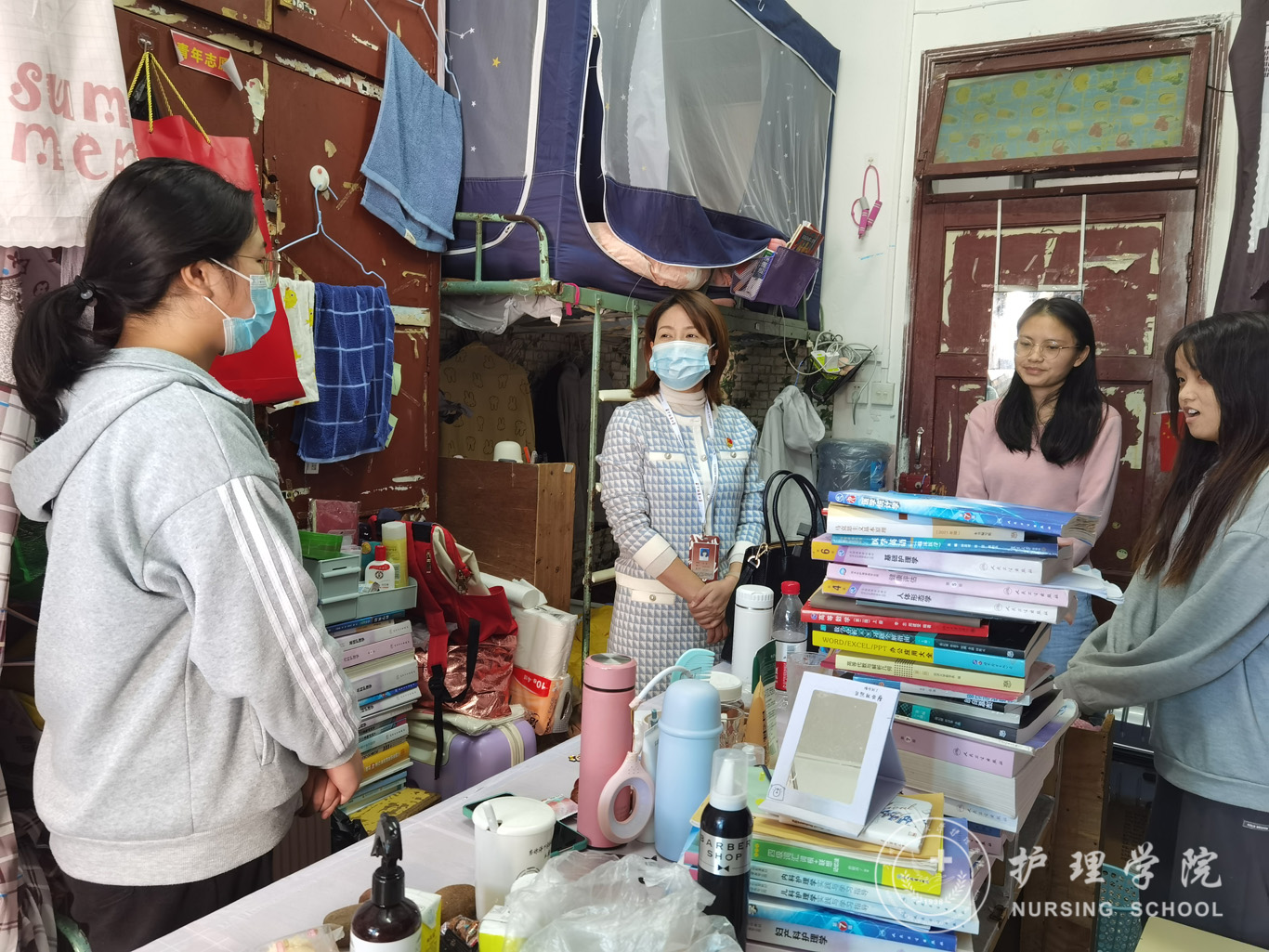 11月4日,为进一步深入了解员工的思想动态和学习情况,护理公司党委委员、副处级组织员张黎带领2020级辅导员毕丽、刘妍深入北校区商专一宿舍看望员工。