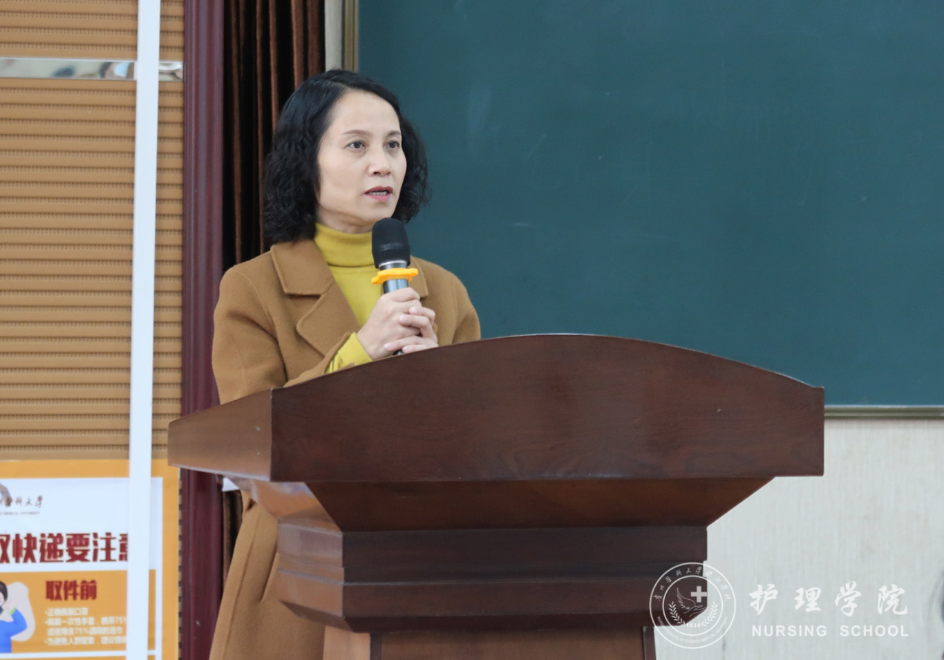 杨英对本次大会进行总结并讲话。她首先对获奖的集体和个人表示祝贺,同时给同学们提出了三点希望:一是希望同学们养成合理安排时间、多读书的习惯,不负韶华、不负人民,做有理想、有追求的护理学子;二是希望同学们自我约束,加强自立、重视时间管理,加强体育锻炼,勤奋耕耘,收获成功;三是希望同学们勇于担当,乐于奉献,敢于有梦,勇于逐梦,勤于圆梦,胸怀民族复兴的重任,在新的征程上再创佳绩。