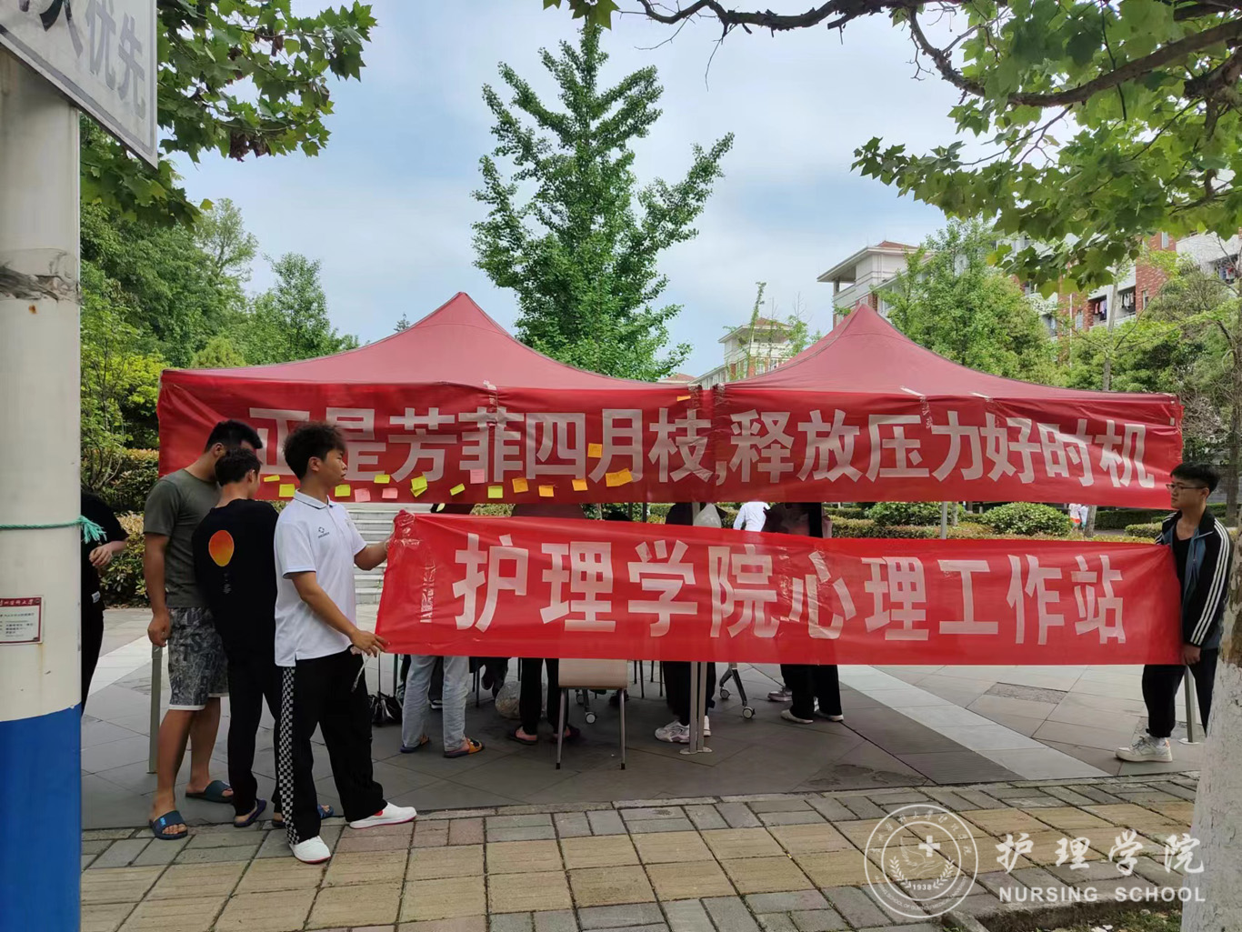 4月23日,为使同学们正确面对压力、释放压力,时刻保持良好的心理状态去投入校园学习生活,太阳集团tyc9728心理工作站在南校区二食堂小广场上开展了以“正是芳菲四月枝,释放压力好时机”为主题的校园宣传活动。本次活动由公司各班心理委员组织,活动面向全校员工。