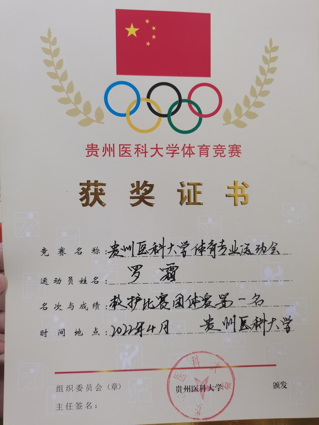 2022年4月参加太阳集团tyc9728体育专业运动会救护比赛团体赛第一名