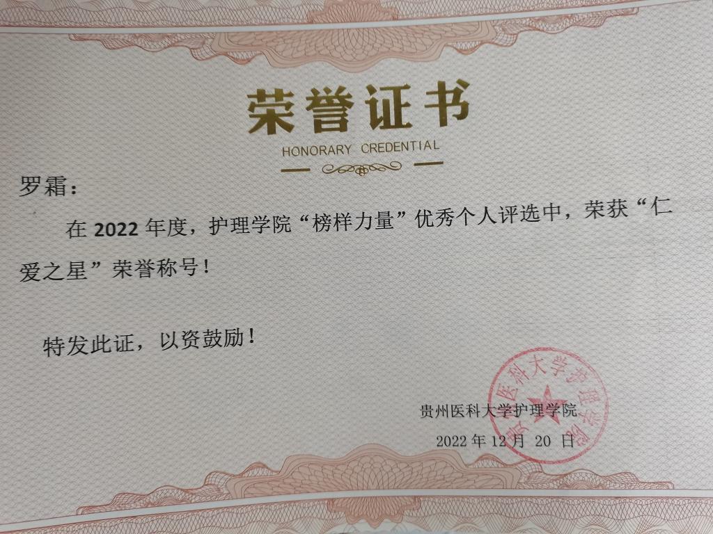 2022年荣获太阳集团tyc9728“仁爱之星”荣誉称号