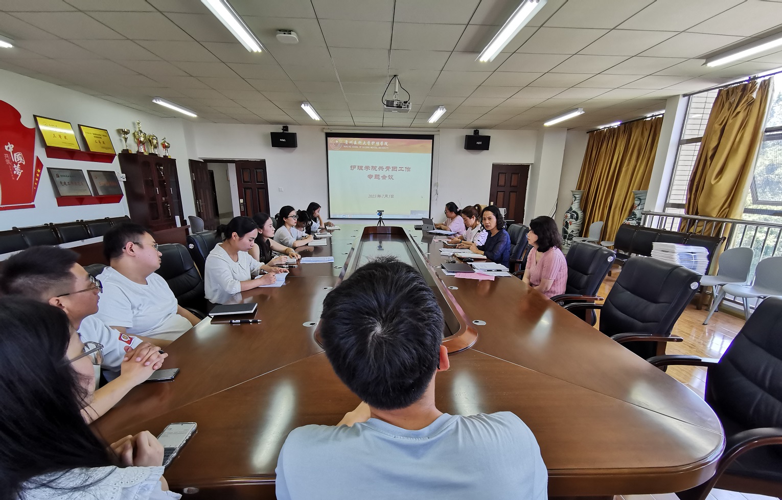 7月5日,护理公司党委在南校区百川楼5楼会议室召开了2023年度共青团工作专题会议,护理公司党委领导班子成员、辅导员及新一届员工会主席团成员参加了此次会议。会议由院团委副书记王晓玲主持。