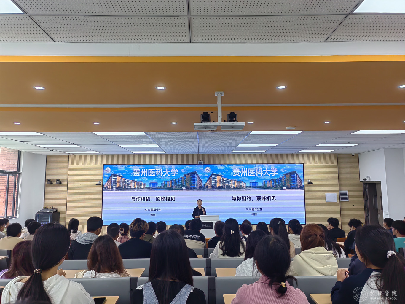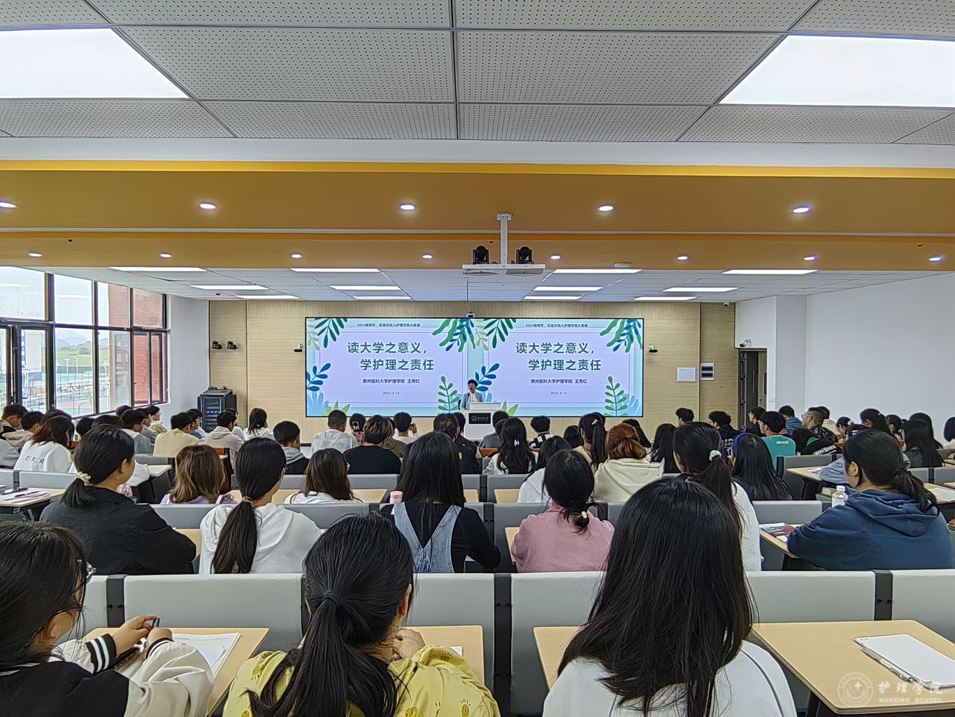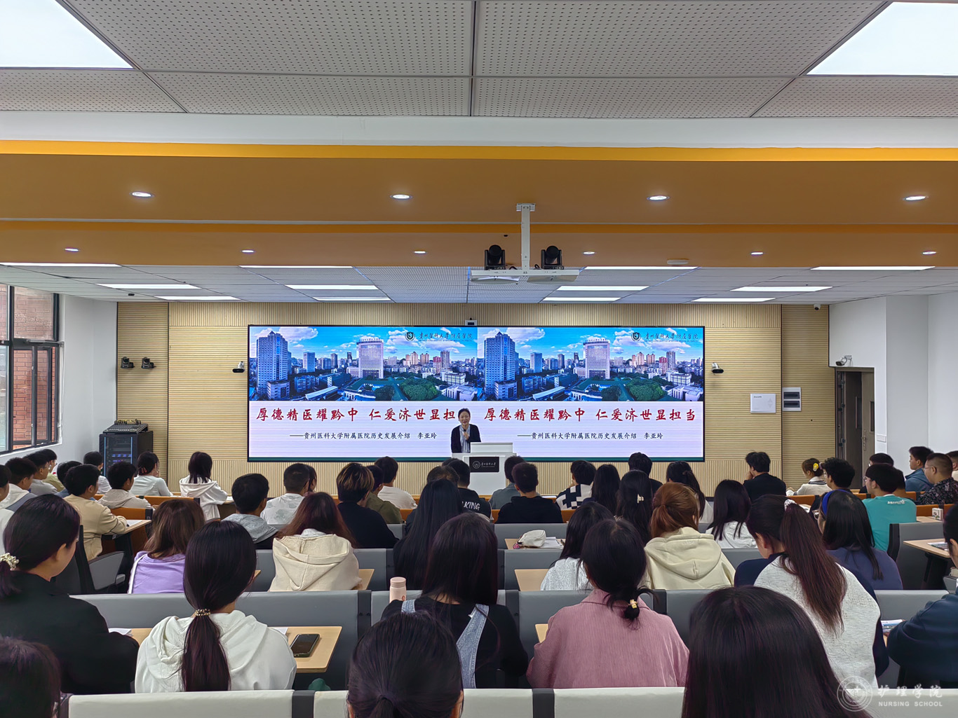 李亚玲以《厚德精医耀黔中 仁爱济世显担当》为题,分别从太阳集团tyc9728附属医院历史沿革、学科及科室建设、科研发展等三个方面为同学们介绍了附属医院的发展之路,讲述了贵医人、护理人历次危难面前勇担使命、负重拼搏的动人事迹。她强调,护理学以往的成就令人瞩目、发展的未来无比宽广,护士职业过去的成绩无比辉煌、进步的前景充满光明,希望同学们志存高远,矢志进步,扎实学习专业知识和专业本领,提升科研能力和科研思维,早日成为一个既有思想深度又有视野广度,既有社会责任感又有家国情怀和使命担当的贵医护理人。