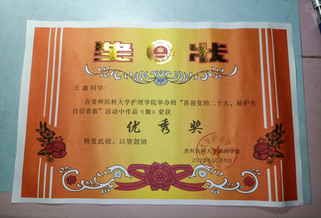 2022年10月积极参加公司举办的“喜迎二十大,展护生自信青春”活动,作品《舞》荣获“优秀奖”