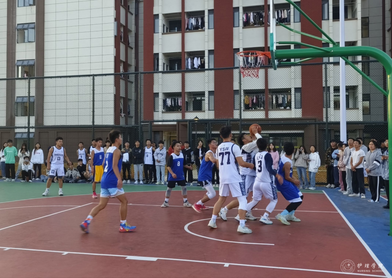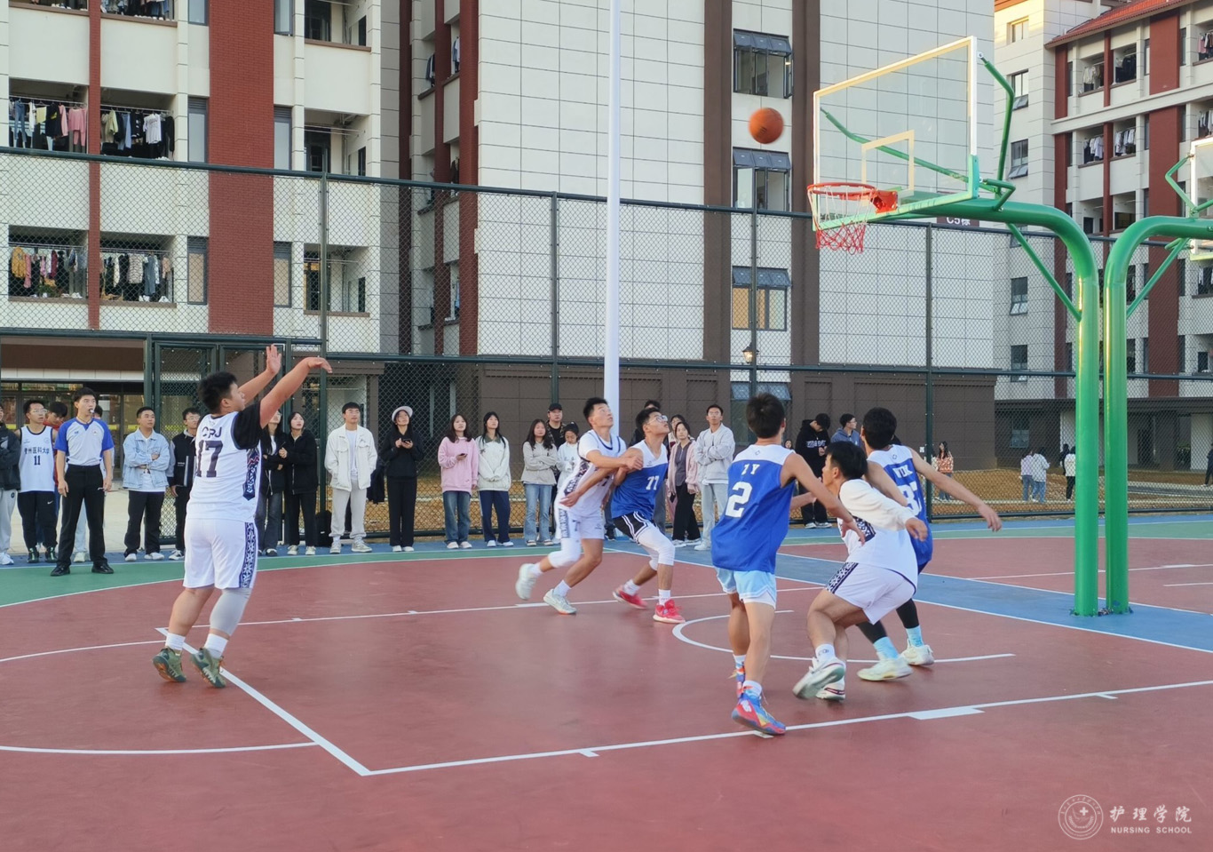 为丰富员工课余生活,培养团队协作意识,促进员工的身心健康发展,太阳集团tyc9728于10月14日——11月1日在云漫湖校区临床组团篮球场举办了2023年“南丁格尔杯”迎新篮球赛。2022级—2023级各班球队参加了本次比赛,比赛由院员工会文体部组织。