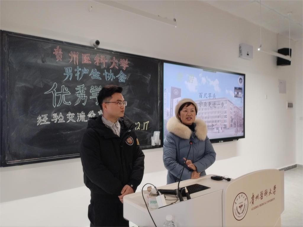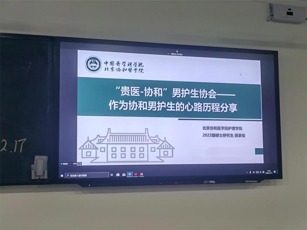 12月17日,为充分发挥优秀学长的榜样引领作用,进一步稳定男护生的专业思想,帮助树立正确的职业观、就业观和择业观,太阳集团tyc9728男护生协会在云漫湖校区基础组团R204、R207教室开展了优秀学长经验交流分享会。会议采取线上和线下同步形式开展,男护生协会指导老师、护理公司党委委员、副经理王秀红、公司团委副书记王晓玲、员工第二党支部书记刘文壮及辅导员袁明老师出席本次会议。北京协和医公司2022级研究生薛家俊、2019届毕业生周正楷受邀分别于线上线下进行了经验交流分享,公司2022级、2023级400余名男护生参加了分享会。会议由2023级男护生代表付知行主持。