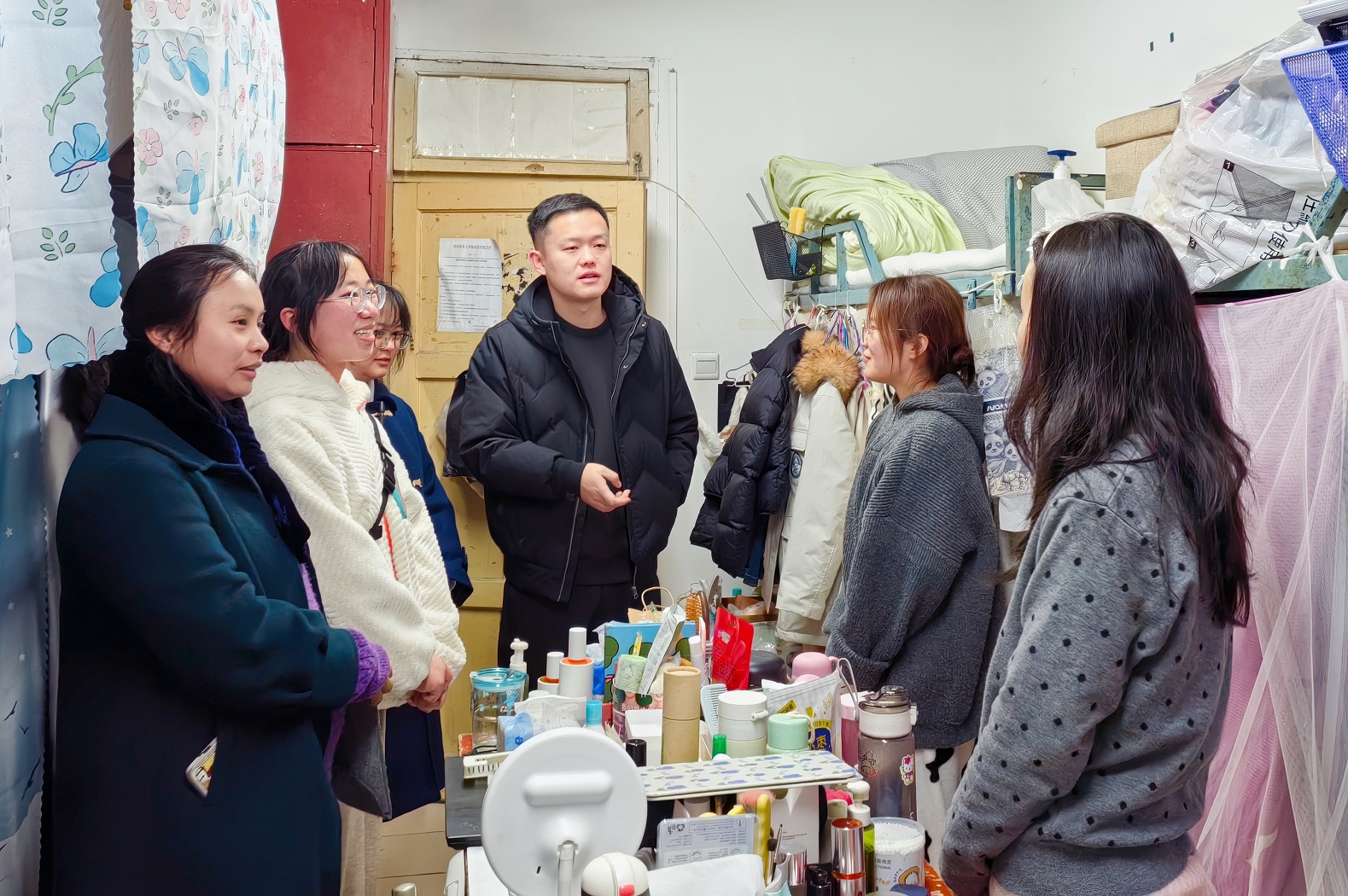 2月5日,为教育和引导研究生提高安全意识,筑牢学习生活安全保障,护理公司党委副书记兼纪委书记何为带领研究生辅导员殷艳走访了研究生宿舍并开展宿舍安全排查。