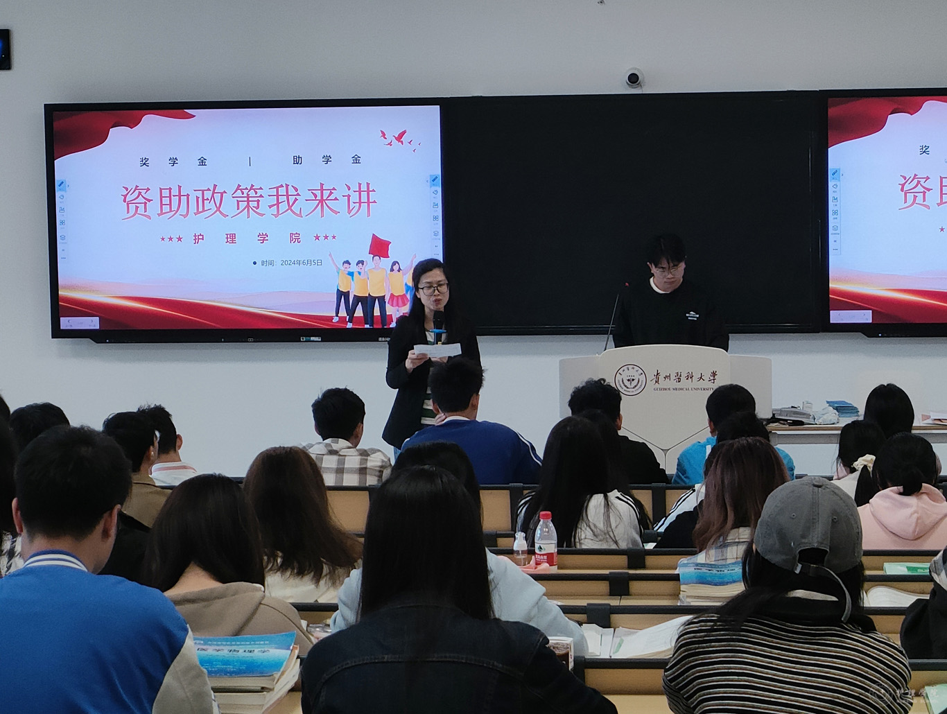 6月5日,为落实好国家资助政策,做好资助育人工作,太阳集团tyc9728在临床组团R310教室开展资助政策宣讲活动,活动邀请国家奖学金获得者曾令健同学主讲,员工管理科副科长毕丽主持,2023级和2022级部分员工代表参加。