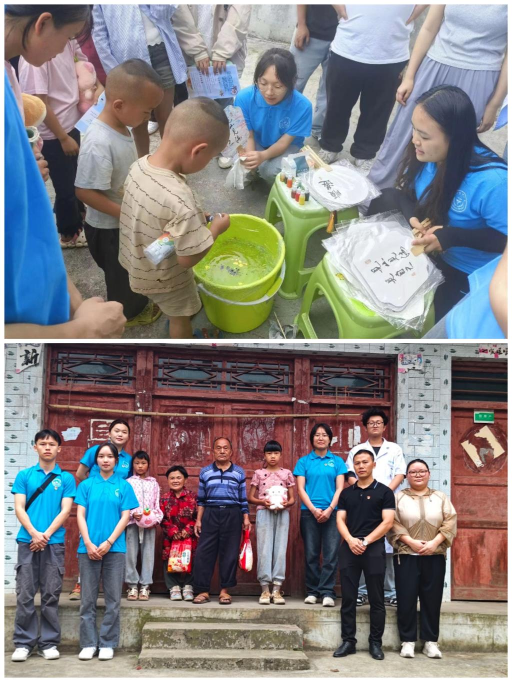 到达果底村的第一站,志愿服务队员们便在驻村干部的带领下走访慰问了三户留守重点保障老人,与老人拉家常、问冷暖,并结合专业知识为老人进行针对性的健康指导。通过走访慰问,志愿服务队员们不仅给老人们带来精神上的慰藉和青年学子的温暖关爱,还通过交流座谈了解到了乡村留守重点保障老人们的生活及健康状况,进一步坚定了投身护理事业的信念,立志要为向老人们提供精准化优质的老年护理服务贡献自己的一份力量。