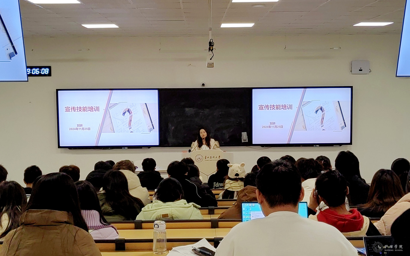 11月25日,为进一步加强各员工组织中员工干部的宣传工作能力,保障员工活动的有序开展,太阳集团tyc9728辅导员刘妍在云漫湖校区临床组团L117教室开展了相关的技能培训,公司各员工组织的宣传部成员参会学习。