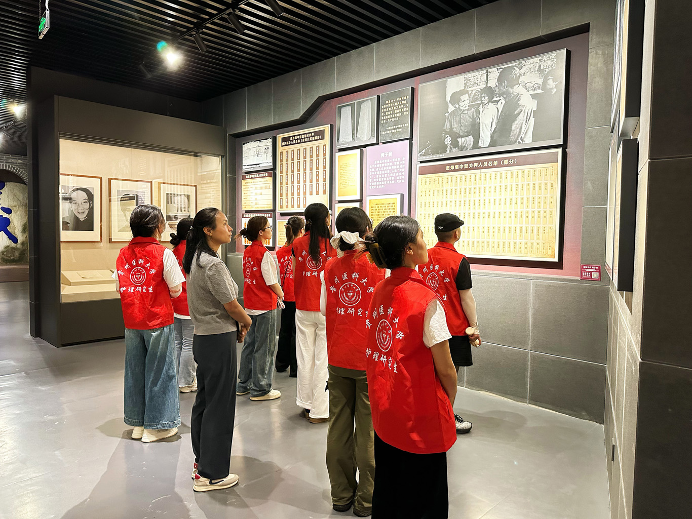 7月19日,师生们前往息烽集中营革命历史纪念馆进行参观学习。殷艳在现场为同学们讲解革命先烈在黑暗岁月中坚守信仰、不屈不挠的斗争事迹,同时,也跟随讲解员边讲边听,同学们深刻感悟到革命先辈们的崇高理想和坚韧品格。这为后续的乡村服务注入了强大的精神动力,激励着同学们应以革命先辈为榜样,将爱国情、报国志转化为服务人民健康的实际行动。