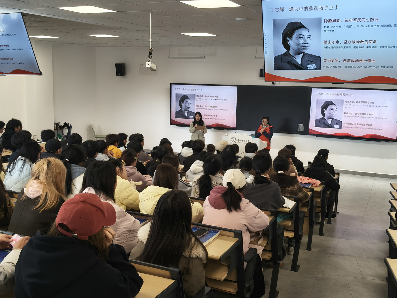 宣讲结束后,同学们纷纷表示,护理先辈的故事绝非尘封的历史,练习无菌操作时,当铭记章央芬编著教材的严谨;直面学习困境时,当传承丁志辉绝境坚守的毅力。未来步入岗位,他们都将以先辈为榜样,用白衣执甲的担当,书写新时代属于护理人的爱国篇章。