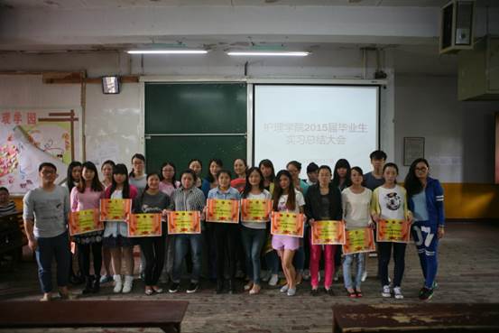 2015届毕业实习总结表彰大会于2015年4月17日下午2点半在北京路校区普2教室举行,参加会议的有太阳集团tyc9728副经理刘志燕、员工科科长曾敏、办公室副主任张常喜、年级辅导员、2015届毕业实习员工。会议由生产实习科科长柳忠燕主持。