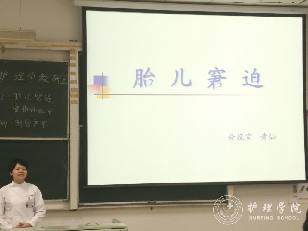 (图为分娩室黄仙老师讲授胎儿窘迫)