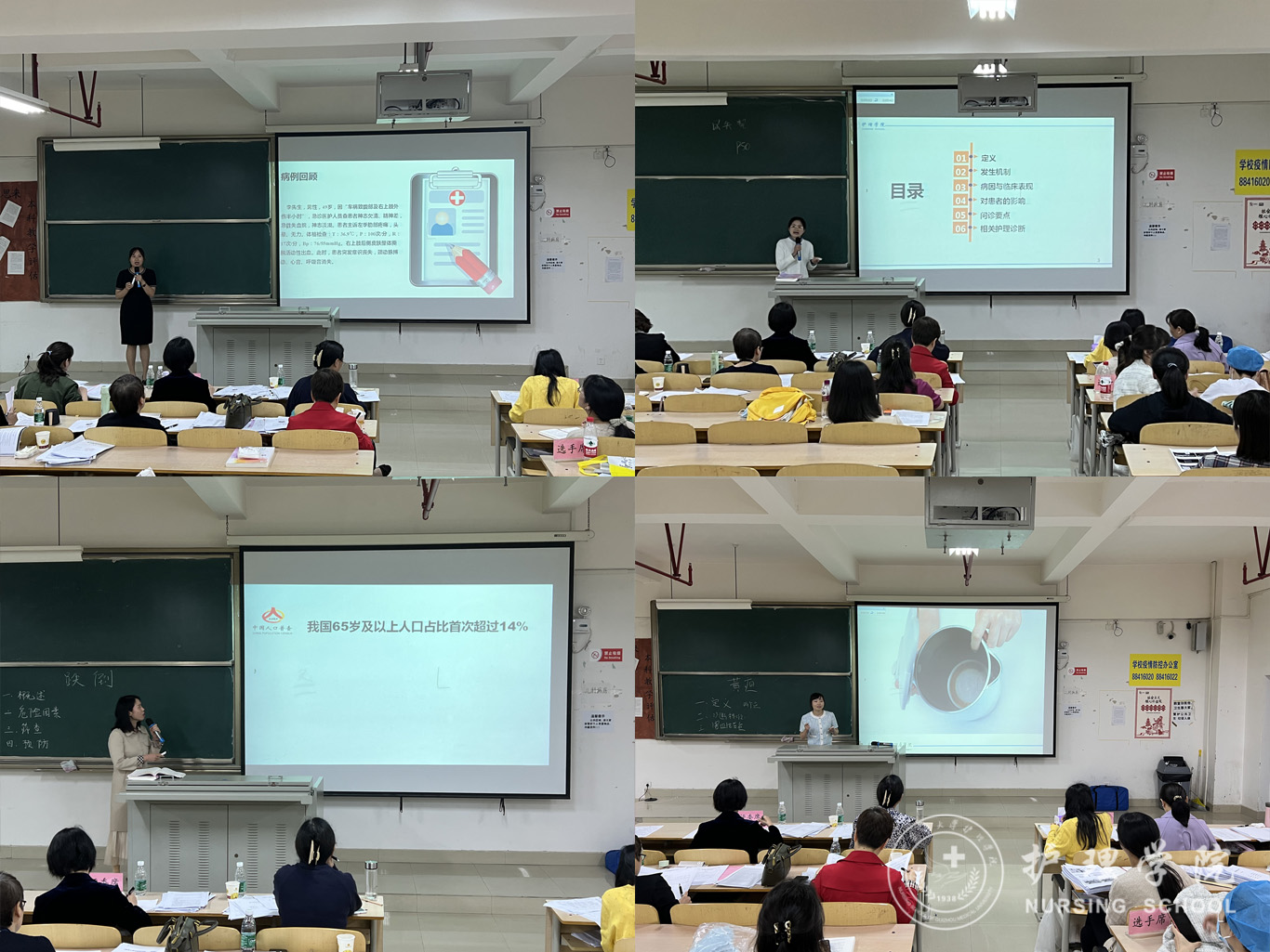 护理公司党委书记杨英、经理李亚玲、副经理刘志燕、附院护理部护理培训管理科科长王锐霞、临床护理教学科陈大春、内科护理学教研室副主任晏家芳、护理学基础教研室副主任熊吴燕出席活动并担任评委。