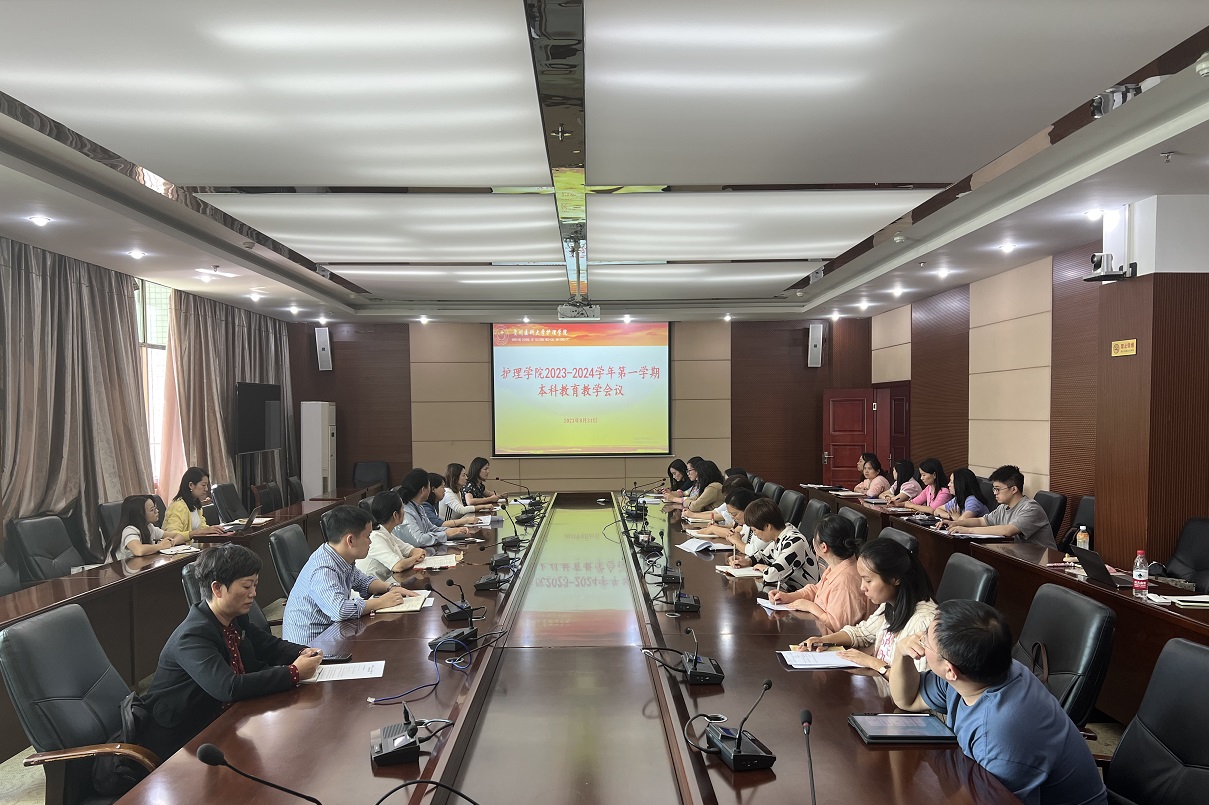 8月31日,太阳集团tyc9728在北校区行政楼六楼连廊会议室召开2023-2024学年第一学期本科公司产品工作会议。党委书记杨英、经理李亚玲、副经理刘志燕、副经理王秀红、护理部副主任顾颖、副处级组织员张黎、全体专业教师、全体辅导员、教学科研管理科全体人员、护理部临床护理教学科全体老师参会,教学科研管理科科长卢海霞主持会议。
