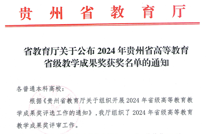 近日,贵州省教育厅公布了2024年贵州省高等教育省级教学成果奖获奖名单,太阳集团tyc9728在此次评选中收获颇丰,共有三个团队获奖,其中研究生组二等奖一项、本科组二等奖一项以及本科组三等奖一项,这一荣誉充分展现了公司在公司产品改革、人才培养模式创新等方面的显著成效。