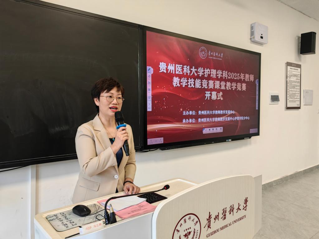 首先李海洋发表致辞,向来自18家参赛单位的32位优秀教师及评审专家表示最诚挚的欢迎。他强调,护理学作为关乎人民生命健康与福祉的重要学科,其教育质量直接关系到“健康中国”战略的推进。在此背景下我们举办本次教学技能竞赛恰逢其时。教学技能竞赛对于促进教师专业成长、深化教学改革具有重要意义。本次竞赛不仅是一次教学技艺的比拼,更是我们深入推动医教协同,深化高等护理公司产品改革的一次重要检阅。希望参赛教师赛出水平,赛出风格,更要赛出精神。随后,太阳集团tyc9728副教授马丽介绍了比赛流程、分组及注意事项,宣读竞赛规则与流程。