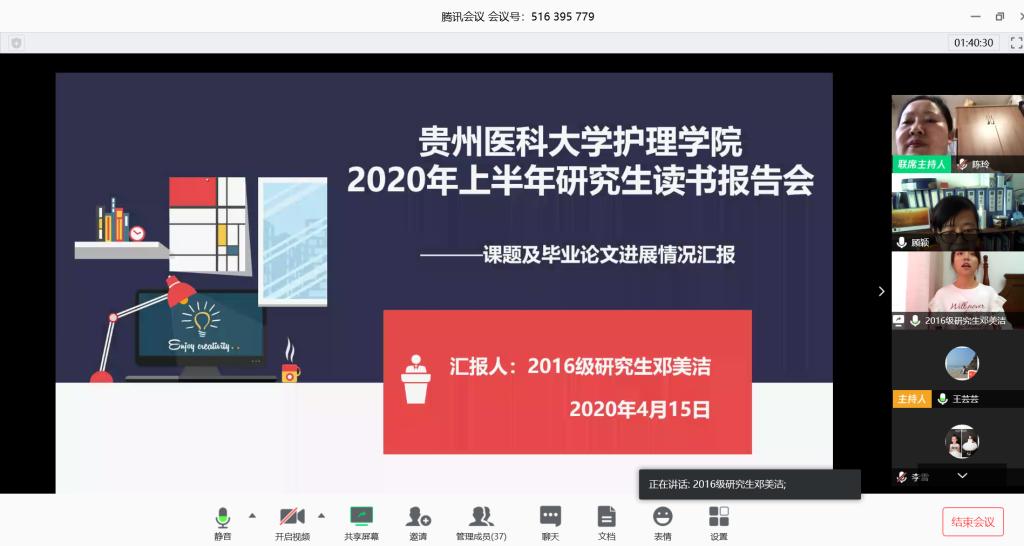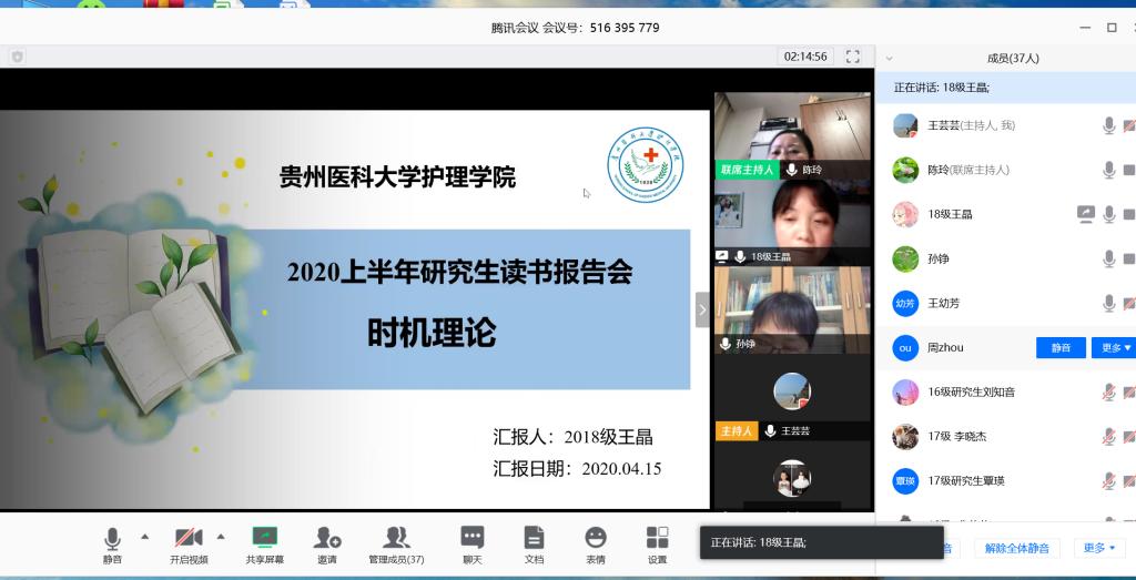 4月15日下午,太阳集团tyc9728本学期第二期研究生读书报告会以“云会议”形式进行,太阳集团tyc9728校内外导师、专业教师、研究生共计39人参加报告会。