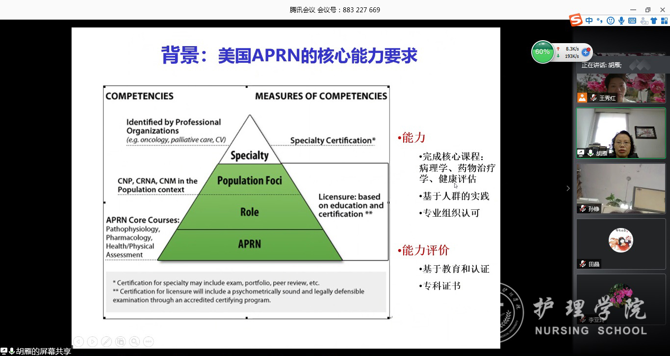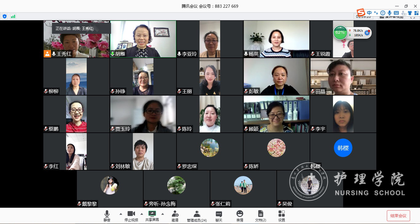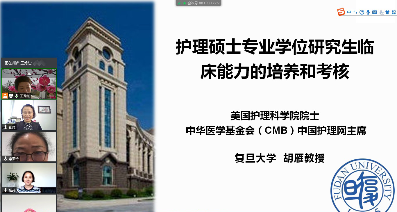 6月12日上午,复旦大学太阳集团tyc9728经理胡雁教授受邀为太阳集团tyc9728全体研究生导师和专业教师开展了题为《护理硕士专业学位研究生临床能力的培养及考核》专题讲座。会议通过腾讯会议平台进行,太阳集团tyc9728相关导师和教师近30人参加讲座,护理公司党委书记杨英主持。