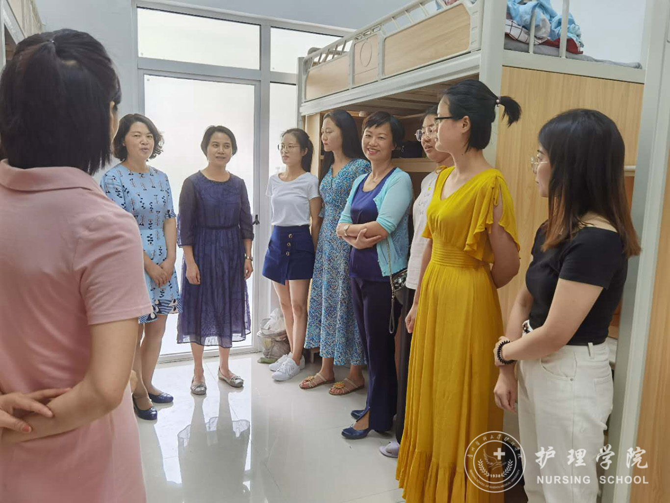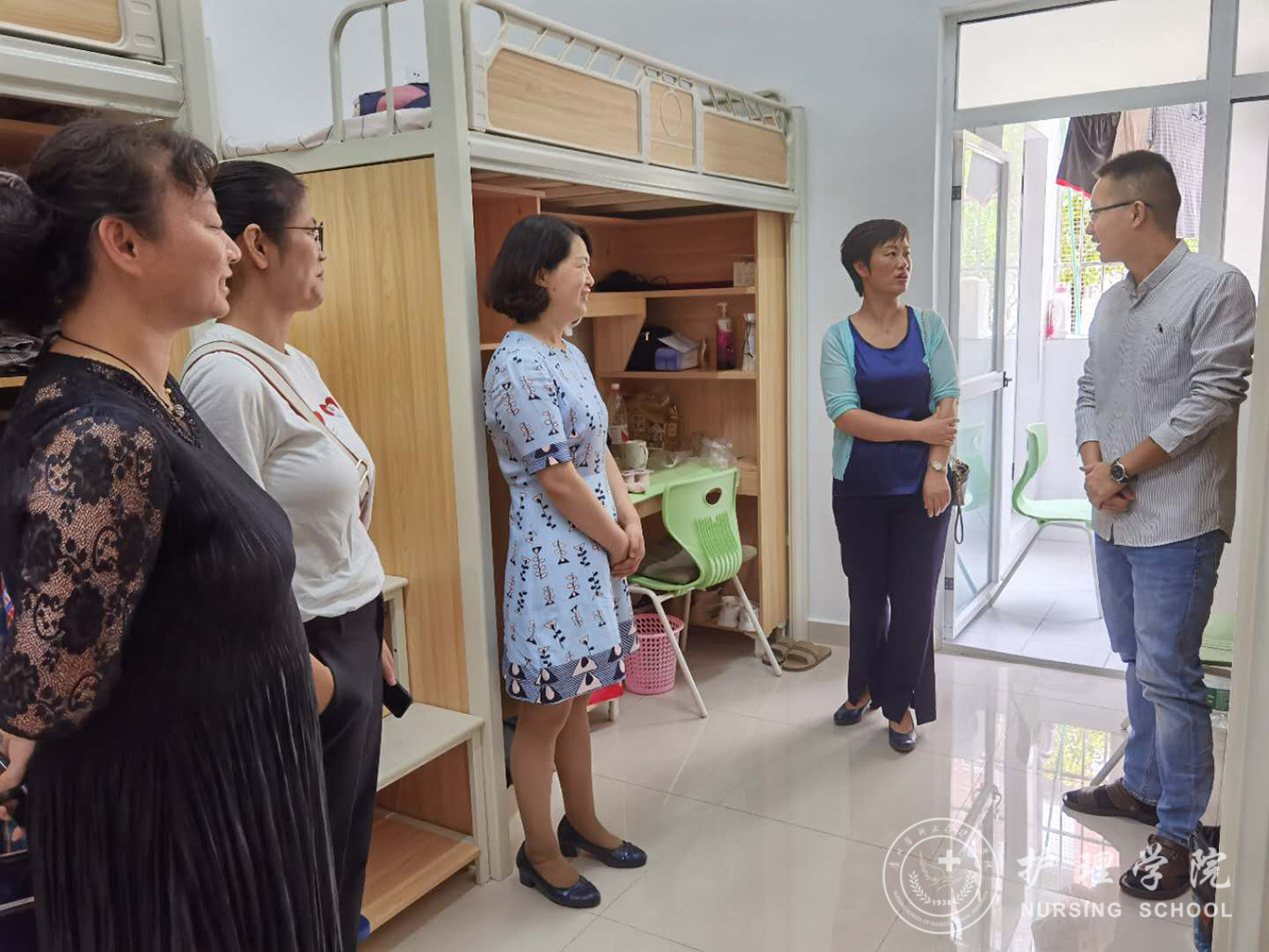 8月23-24日,2020级研究生新生共计22人顺利完成入学手续入住南校区。8月25日中午,护理公司党委书记杨英、副经理刘志燕、党委副书记王秀红及研究生教学及员工管理教师一行来到员工宿舍看望同学们,在了解同学们的学习、生活和思想状况的同时,也对宿舍安全、宿舍卫生、宿舍文化等工作进行了检查指导。