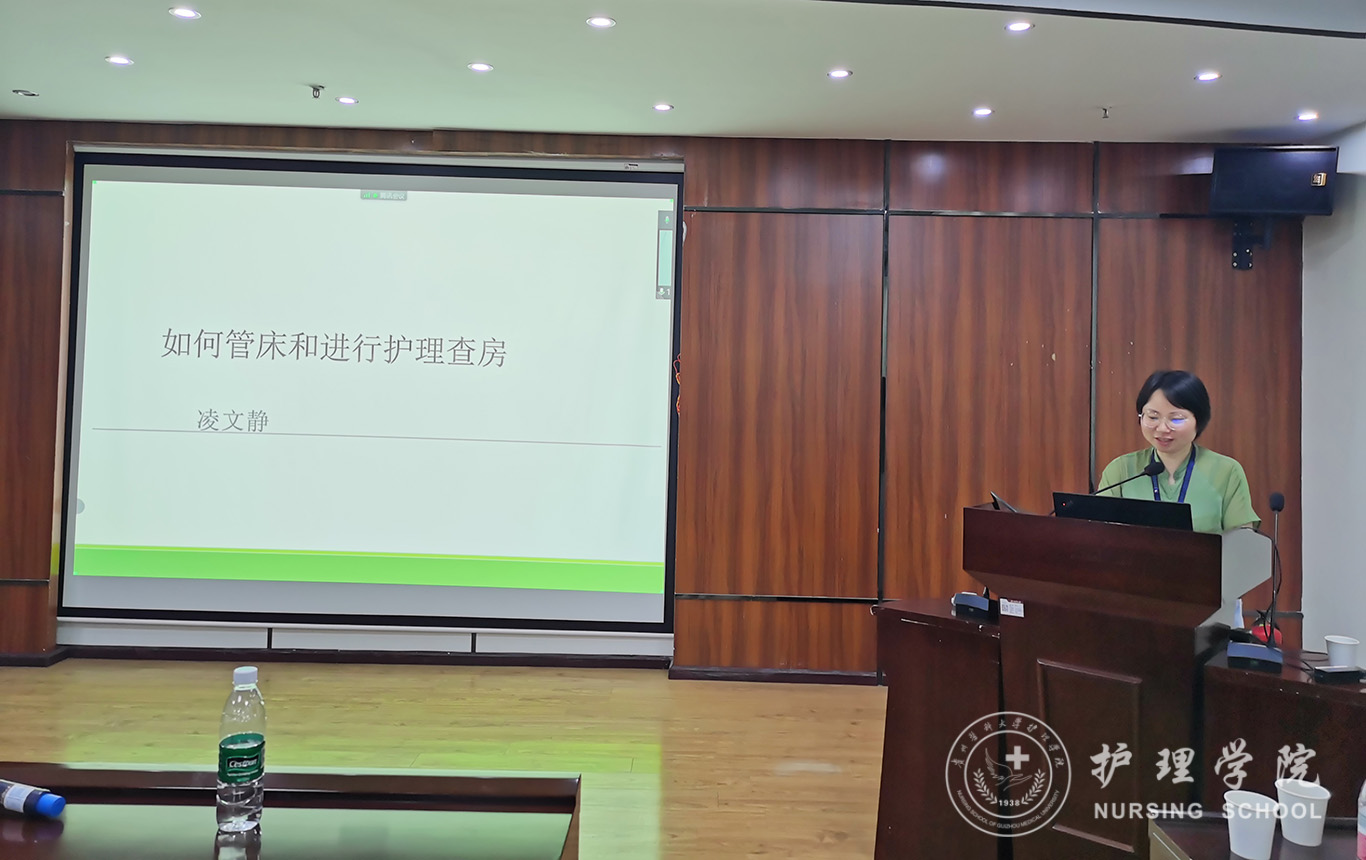 指导会上,凌文静结合自己在复旦大学太阳集团tyc9728研究生学习期间的经历,以“如何管床和进行护理查房”为题,从查房的准备、实施、考核、注意事项等方面做了精彩的分享,同时针对同学们在临床实践过程中的常见心理问题给予了积极的引导。