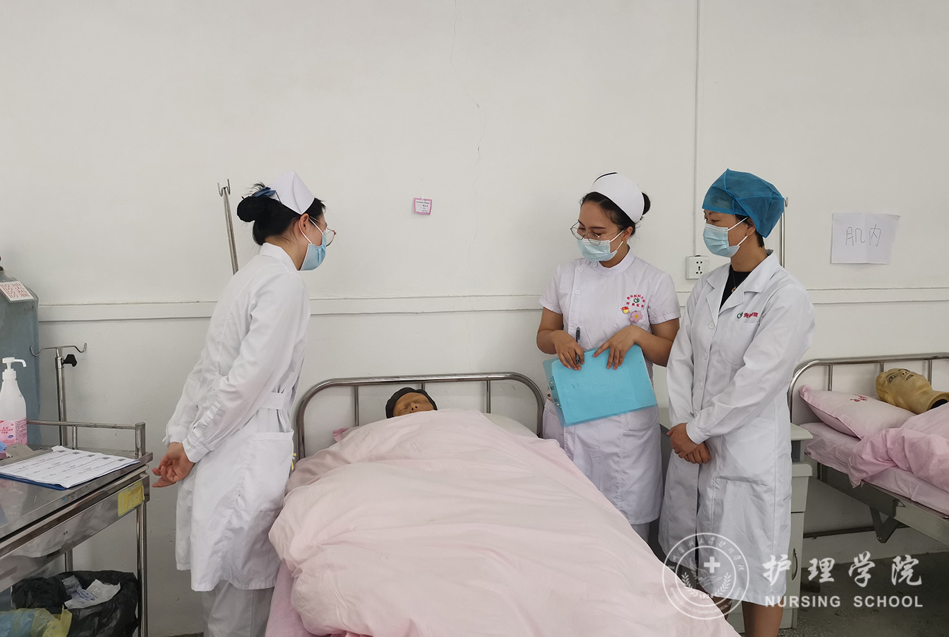 8月11日,4个考核小组到研究生临床实践相应科室对研究生进行考核。每位研究生同学根据护理病历所选择的疑难病例开展床旁护理查房、PPT汇报及1项实践技能操作。考核专家通过查阅护理病历、听取汇报、现场提问进行现场打分。8月18日,考核专家对研究生进行了结合案例的综合基础护理技能操作考核。考核结束后,考核专家针对同学存在的问题和不足提出了意见和建议。