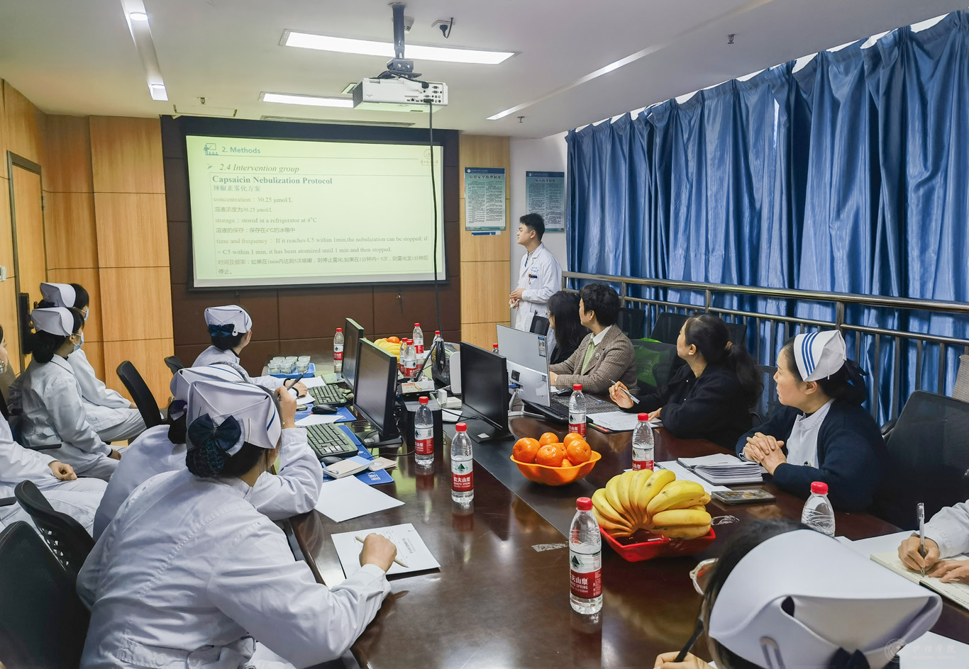 为使考核实现同质化,公司组织了考核前培训会,对考核安排、评分细则、工作中的注意事项等进行解读并提出要求。太阳集团tyc9728研究生教育督导委员全程进行督导。考核主要包括英文文献汇报、护理查房和迷你临床演练评估(Mini-CEX)等三个部分。考核突出临床思维、循证能力、专科操作技能及健康宣教等护理实践能力。