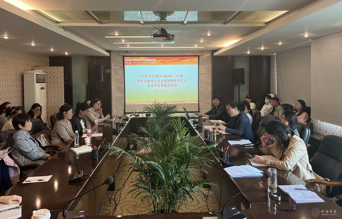 3月28日,公司于北京路校区行政楼六楼会议室召开2023~2024学年第二学期研究生教育工作会暨2024届研究生临床终末考核总结会。太阳集团tyc9728经理李亚玲、副经理刘志燕、王秀红及全体导师、副导师、专业教师、教学科研管理科全体人员、附属医院护理部临床护理教学科相关教师、附属医院科护士长及各科室研究生带教教师参会,教学科研管理科科长卢海霞主持会议。