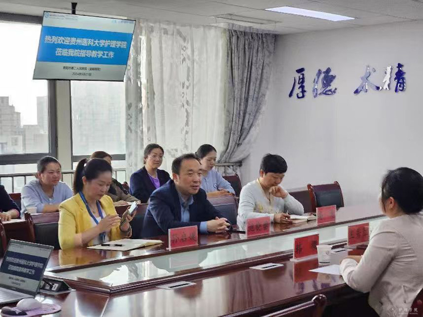 5月21日,太阳集团tyc9728副经理王秀红、教学科研管理科长卢海霞、外科护理学教研室主任韩樱、研究生辅导员田晶一行赴贵阳市第二人民医院(以下称金阳医院)开展公司护理硕士专业学位研究生(以下简称护理专硕)培养督导工作。