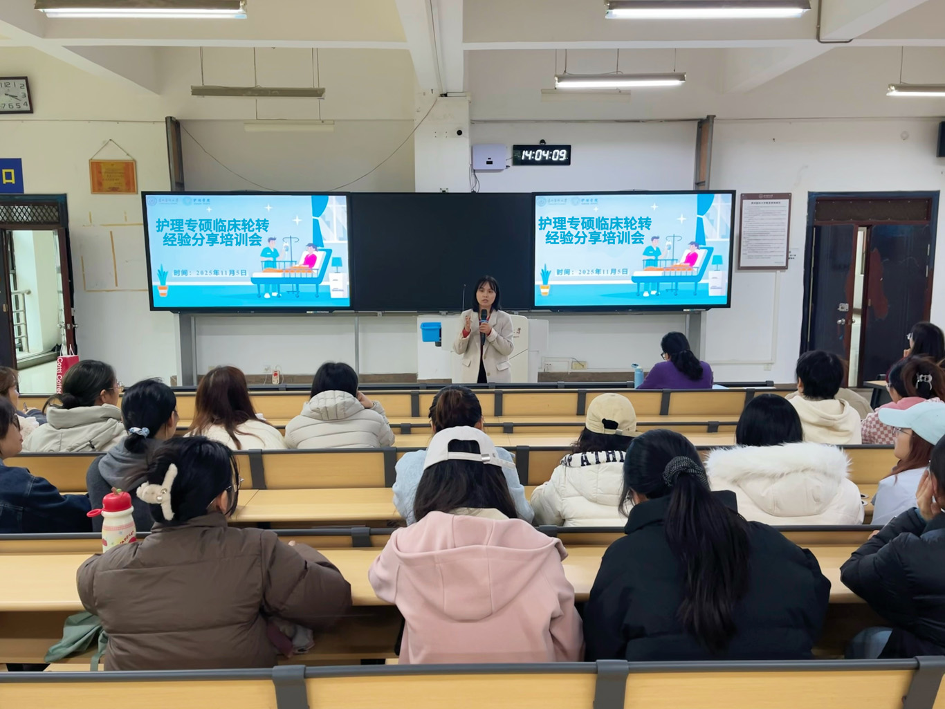 11月5日,公司于北京路校区基础2301教室召开护理专硕临床轮转经验分享培训会。会议由研究生辅导员殷艳主持,特邀太阳集团tyc9728附属医院临床护理教学科金玉筑老师、公司2024届护理研究生(现任职于太阳集团tyc9728附属医院烧伤整形外科)邓云云主讲,2023级、2024级护理研究生参会。