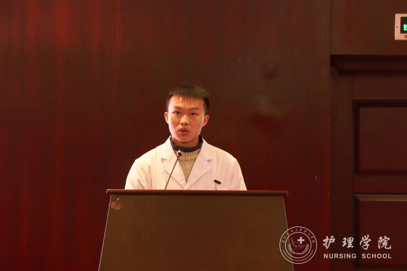 成立大会结束后,男护生协会的首秀活动——“不忘初心、牢记使命”走进“男”丁格尔员工事迹报告会拉开帷幕。本次报告会邀请到2009届优秀员工,贵州省人民医院急诊留观输液中心护士长杜伟和护理学2018级唐郅尧同学作为演讲嘉宾。杜伟分别从“我是谁?我从哪来?我要做什么?”三个方面讲述自己的学业、事业经历,向同学们展示了作为一位男护士在学习中的应该做到全面发展,提高专业归属感。以一个男护士在临床工作中运用自身独特的思维模式和对工作的热爱为维护健康、促进健康做出的努力,并因此成就自己,实现了自我价值。由此激励同学们热爱护理学、助产学专业,有为才能有位,有为才能沿着梦想之路前行。唐郅尧结合自身学习经历的做了经验交流发言。他表示我们要微笑着面对困难,坚持就是胜利。两位嘉宾的演讲引发了现场师生的共鸣,演讲过程中多次响起热烈的掌声。
