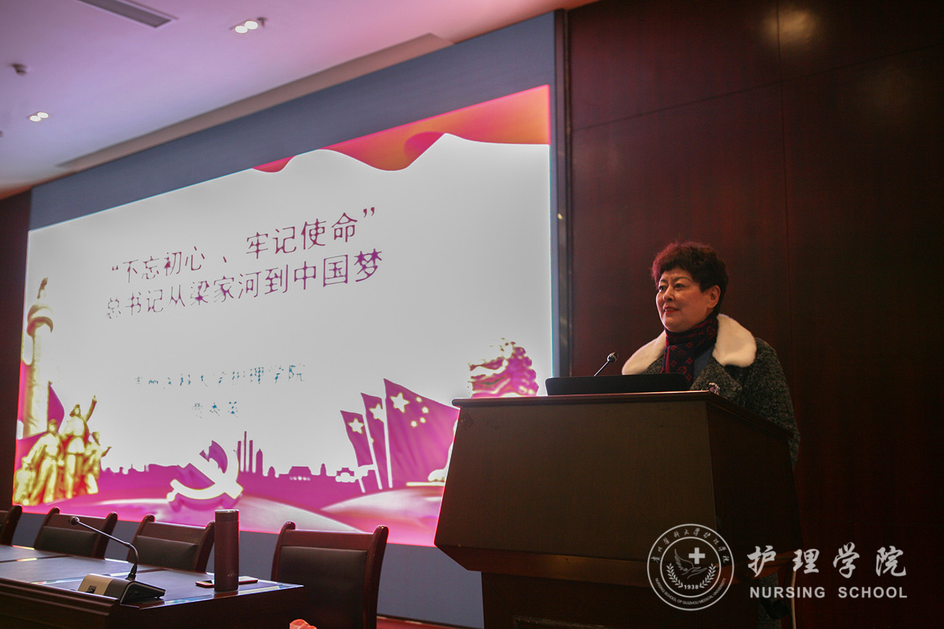 贾秀英为大家讲授了习近平总书记在梁家河的故事,通过丰富的图片,详实的文字,展示了习近平总书记知青岁月中的艰苦生活和成长历程,集中体现了他的崇高理想信念、丰富实践经验、卓越领导能力和人格魅力。随后贾秀英深刻讲述了正确理解“中国梦”的本质,中国梦——实现中华民族伟大复兴,其本质是国家富强、民族振兴、人民幸福。她强调通过学习十九大报告,对新时代新思想有三点深刻体会:必须走中国之道路,道路决定命运;必须弘扬中国精神,精神凝心聚力;必须凝聚中国力量,力量产生动力。