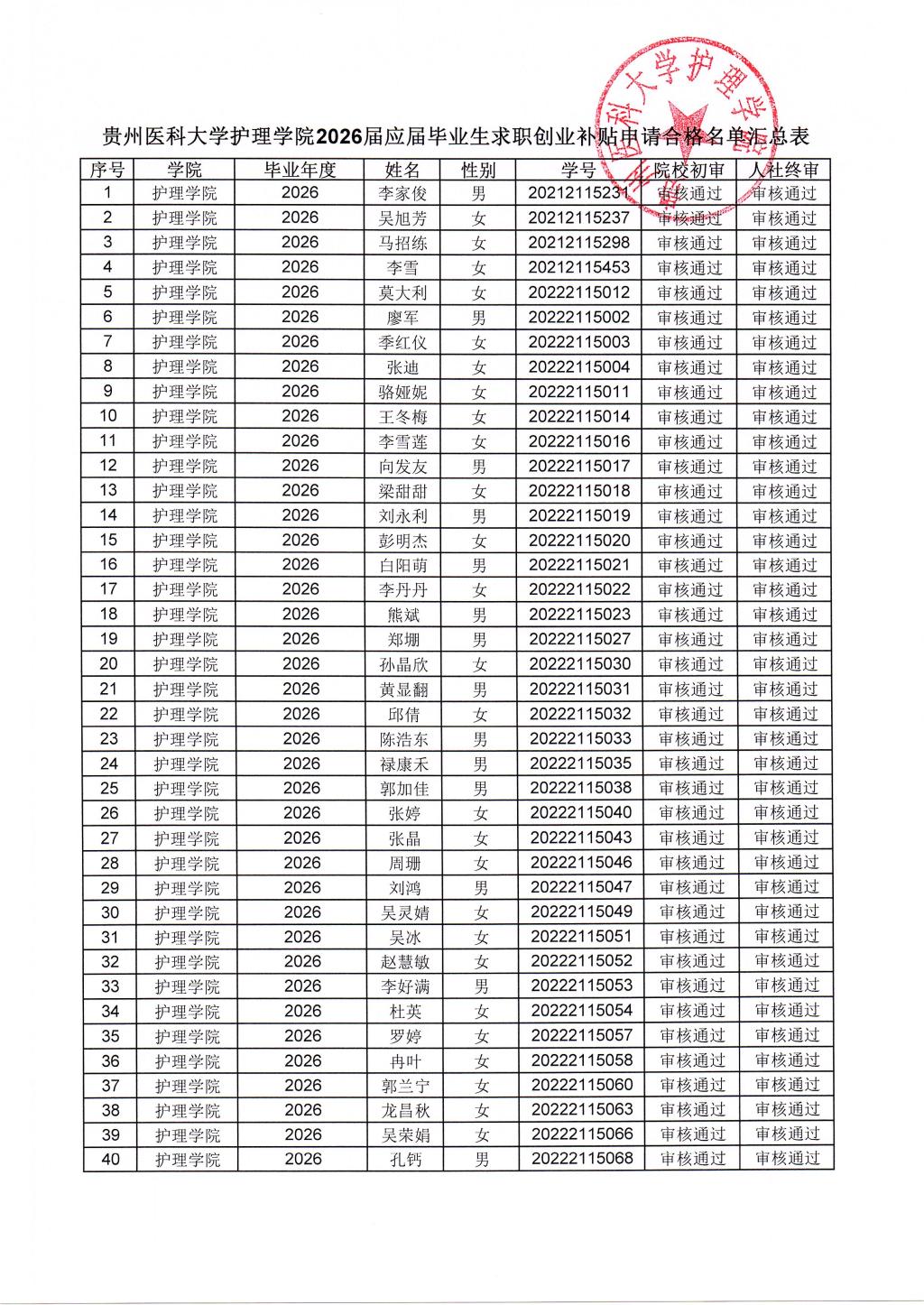 2026届应届毕业生求职创业补贴申请合格名单公示