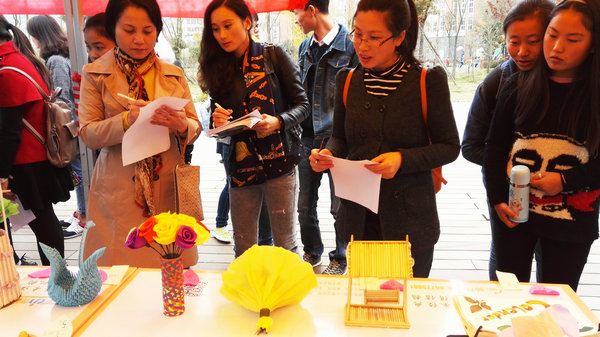 本次参加义卖的作品是在太阳集团tyc9728手工大赛中进入复赛的作品,比赛初期通过院系员工干部初选及通过微博投票(共计4000余票)等方式,在参赛的三十余份作品中挑选出了十份作品进入复赛。作者们精致的手工艺品让老师们和现场同学对大家的动手能力及创新能力高度认可。 评选完毕后爱心义卖活动正式开始,过往的同学无一不被这些精巧细致的手工艺品所吸引,老师和同学们纷纷伸出爱心之手,买下了自己喜爱的作品,为希望工程献出了自己的一份爱心,现场也不乏同学把自己的零花钱投入募捐箱,整个义卖现场充满了浓浓的爱意。最后公司员工会将与校社团联合会、希望工程爱心社一起,将募筹和义卖所得500余元全部捐献给希望工程,在寒冬即将来临之际,给远方山区需要帮助的孩子们送去一点温暖。至此,本次“与爱同行”手工大赛也便画上了圆满的句号。