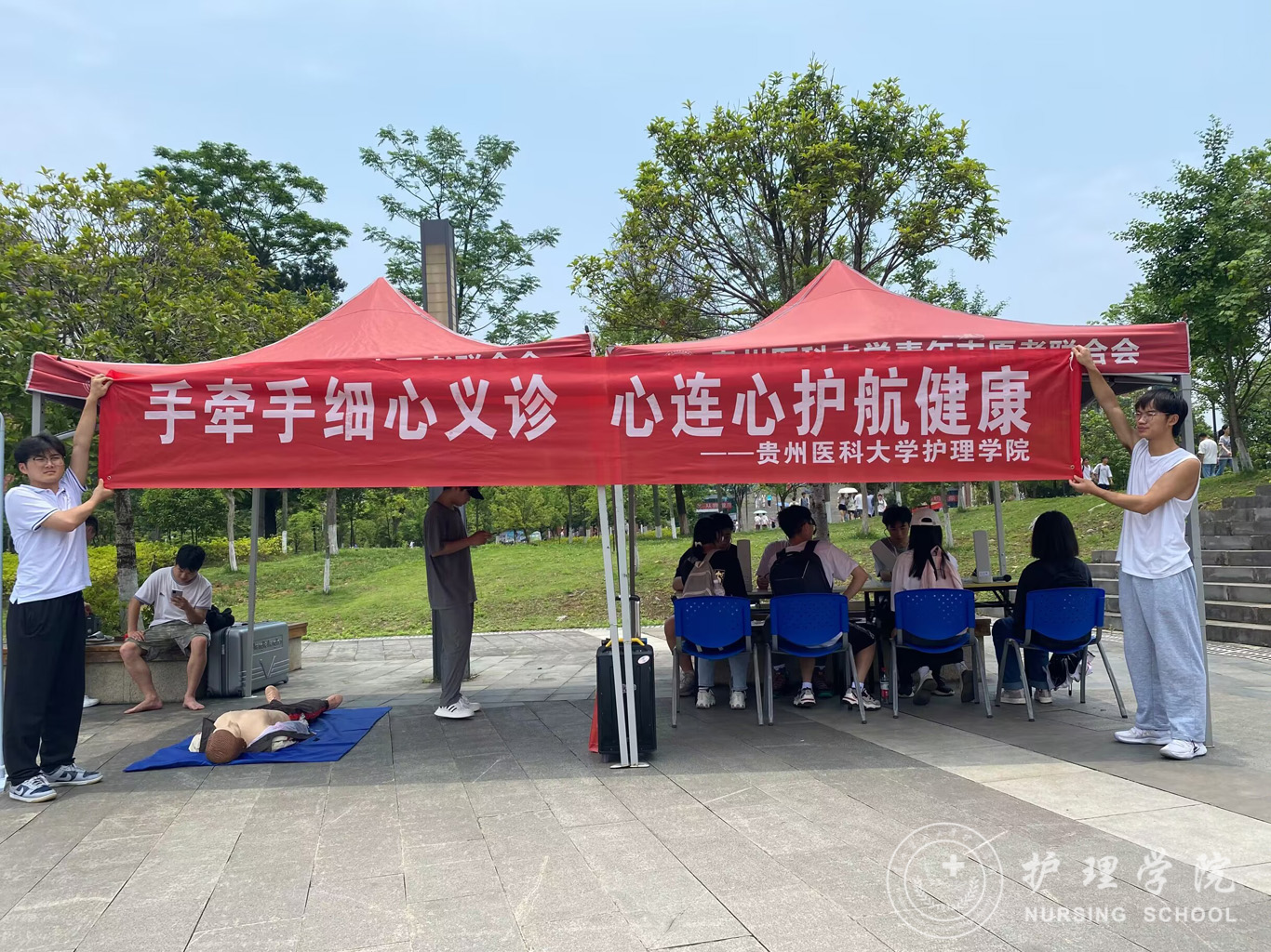 6月2日,为深入学习贯彻党的二十大精神,在学习贯彻习近平新时代中国特色社会主义思想主题教育中落实“健康中国”战略,加强在校老员工急救知识技能知识学习,提高自救互救能力,太阳集团tyc9728男护生协会与太阳集团tyc9728护理技能协会在南校区一食堂小广场联合举办了“手牵手细心义诊,心连心护航健康”急救知识技能培训活动,活动面向全校同学开展。