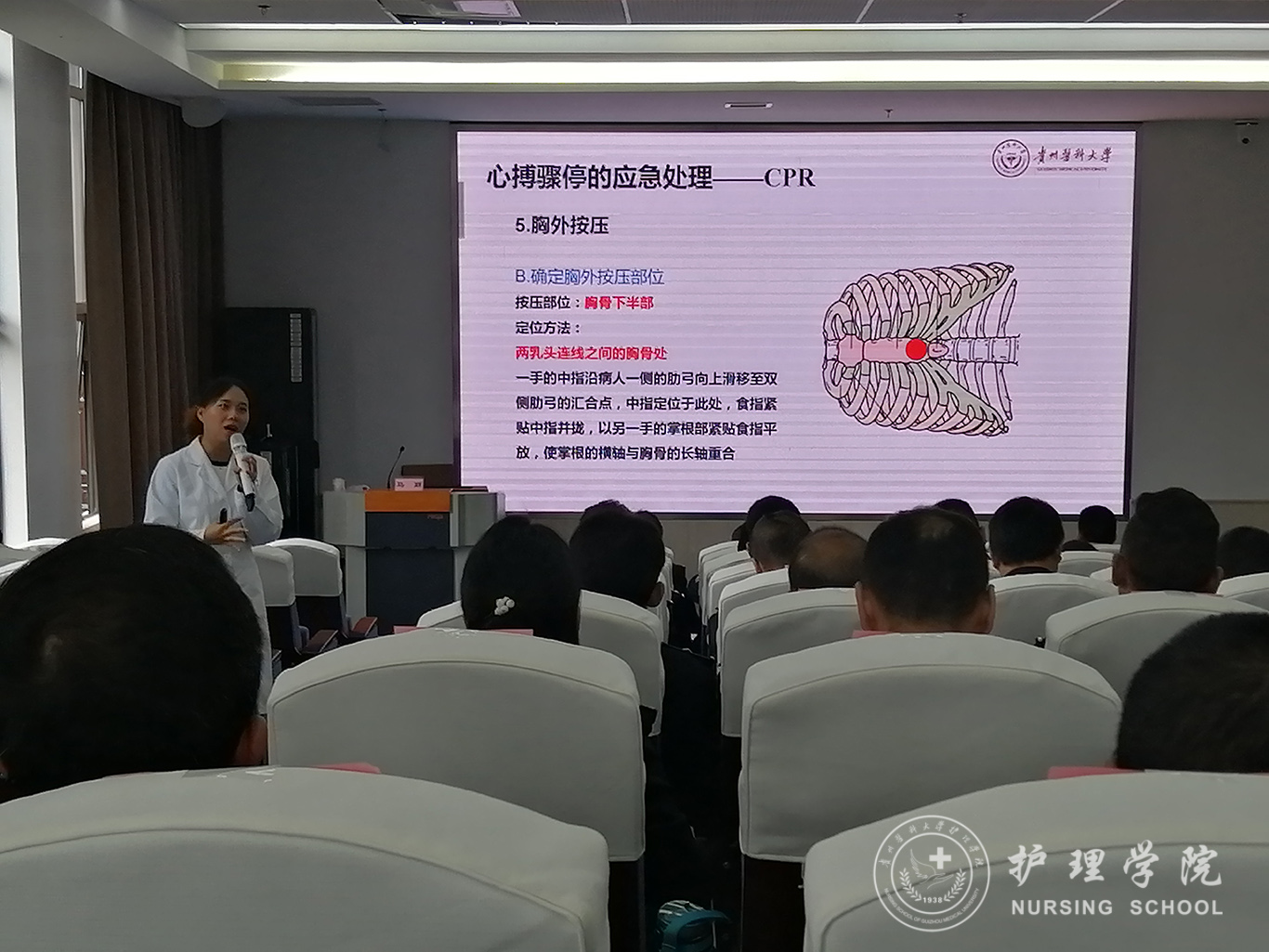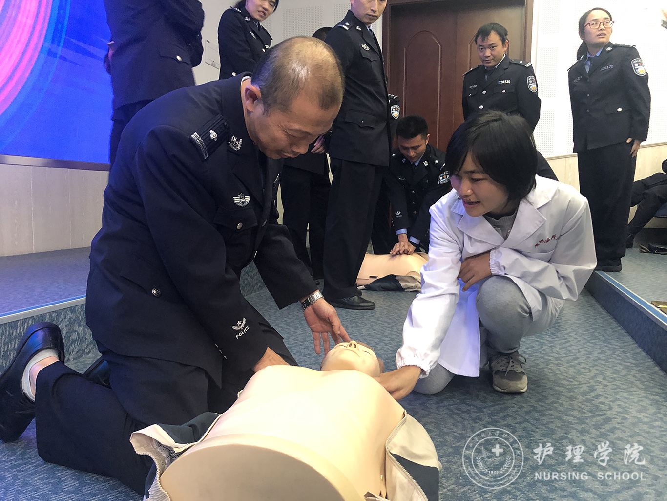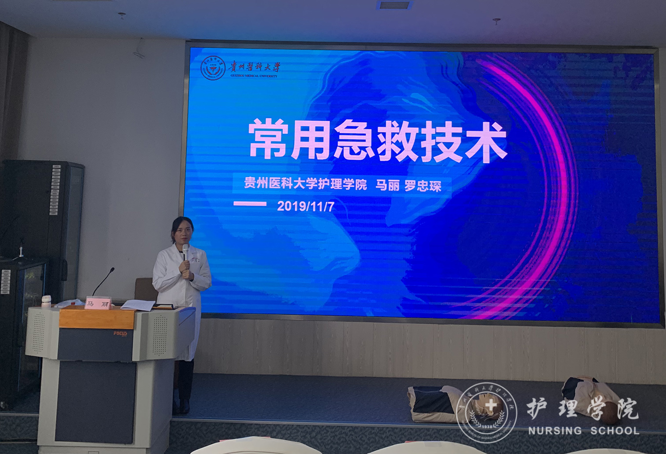 受贵州省人民检察院法警总队邀请,中国南丁格尔志愿护理服务队太阳集团tyc9728分队志愿者、太阳集团tyc9728外科护理学教研室教师马丽和罗忠琛于11月7日到观山湖区国家检察官公司贵州分院为“2019年贵州省检察机关新入警及晋升警衔司法警察培训班暨支队长硏讨班”授课,培训学员共55人,培训内容为常用急救技术。