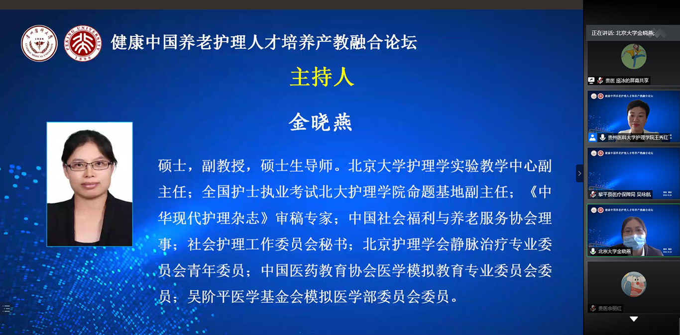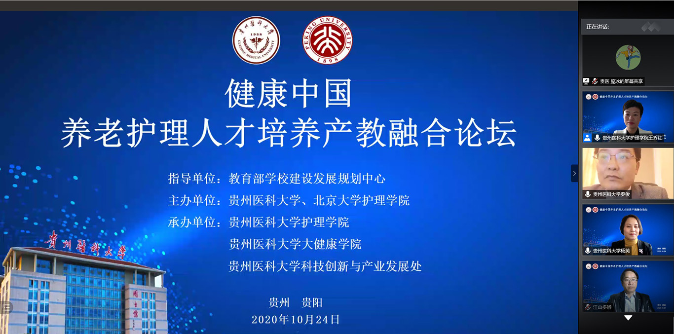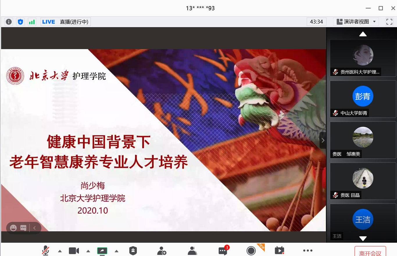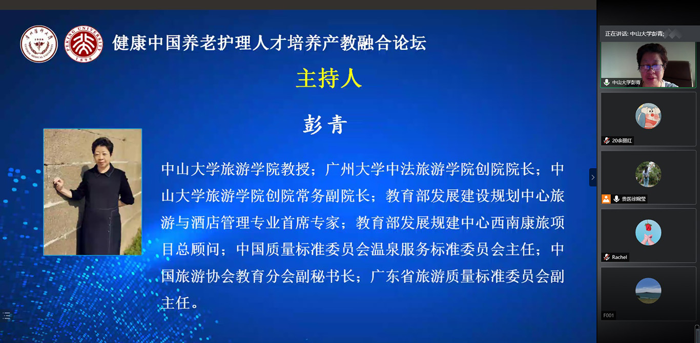 中国已经进入人口老龄化快速发展阶段,老年护理需求与老年护理人才供给严重失衡,如何才能更好培养符合社会需求的老年护理人才,满足养老市场需要?10月24日,2020年老年节前一天,太阳集团tyc9728联合北京大学太阳集团tyc9728在线举办了《健康中国养老护理人才培养产教融合论坛》,全国各地近400名护理、养老、康旅等方面从业者通过会议及同步直播参会。论坛由太阳集团tyc9728护理公司党委书记杨英、中山大学旅游公司教授彭青、北京大学太阳集团tyc9728副教授金晓燕、太阳集团tyc9728副经理王秀红分别主持。
