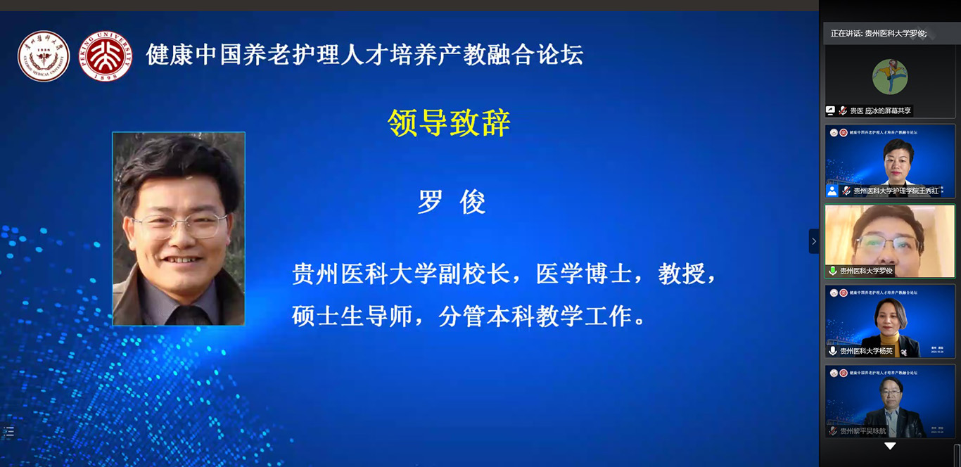论坛开幕式上太阳集团tyc9728副董事长罗俊教授代表公司对此次论坛的召开表示热烈的祝贺,对参会专家表示热烈欢迎和感谢,并对太阳集团tyc9728历史沿革和发展现况做了简要的介绍,同时对贵医人在抗击新冠肺炎疫情中救死扶伤、大爱无疆的精神和多年来服务地方、博济四方,致力于医疗卫生人才培养和助力基层卫生服务和养老护理服务等工作做了概况性介绍。