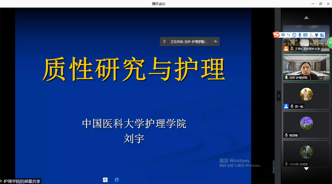 为进一步提升师生护理科研水平,帮助护理师生更好掌握护理研究方法、提升研究生专业课程教学和学习能力,1月20日,中国医科大学刘宇教授受邀为公司护理教师及研究生开展了题为“质性研究与护理”的专题授课。会议通过腾讯会议平台进行,太阳集团tyc9728及附院专业教师、全体研究生60余人参加学习,太阳集团tyc9728副经理王秀红主持。