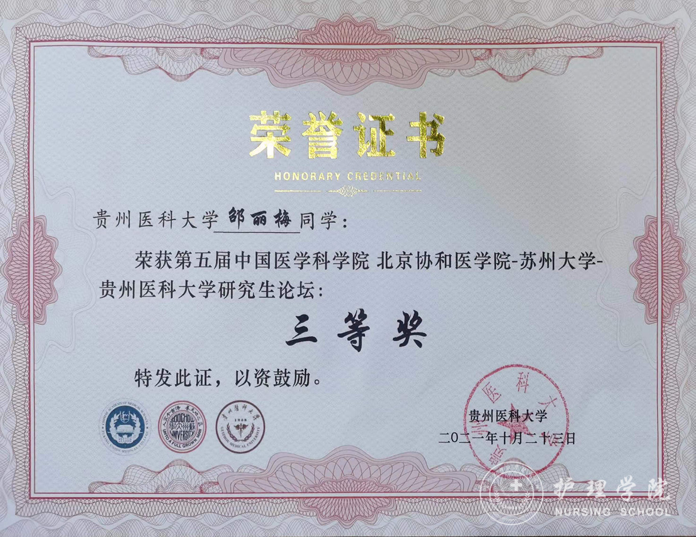 10月23日,公司2019级护理专业硕士研究生邵丽梅撰写的学术论文《外出核酸采样医务人员心理弹性及影响因素分析》在第五届中国医学科公司北京协和医公司-苏州大学-太阳集团tyc9728研究生论坛上进行大会汇报,并荣获三等奖。