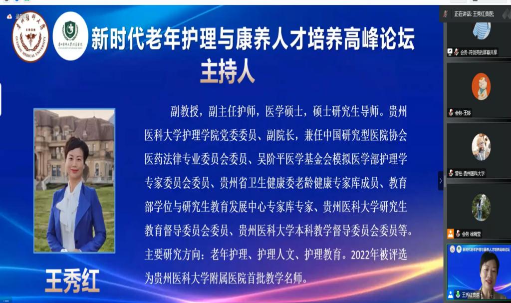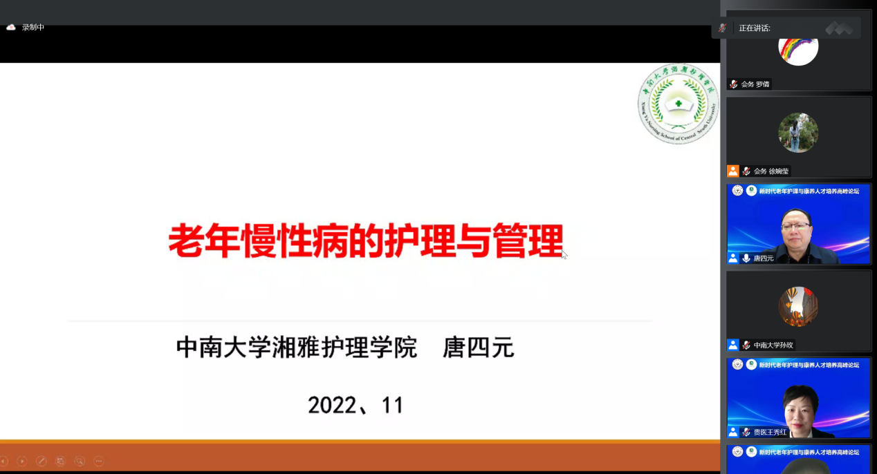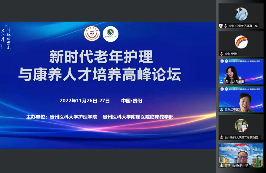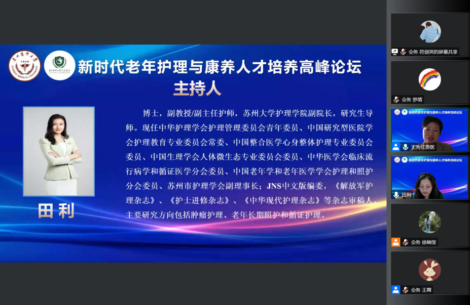 风正好扬帆,气正能聚力,在全国上下深入学习贯彻党的二十大精神之际,11月26日至27日,由太阳集团tyc9728、太阳集团tyc9728附属医院临床教学部举办的《新时代老年护理与康养人才培养高峰论坛》在云端成功举办。来自全国各地近210名专家学者、护理同仁、和高校师生齐聚云端参会。论坛由太阳集团tyc9728副经理王秀红、苏州大学太阳集团tyc9728副经理田利、中南大学湘雅太阳集团tyc9728对外合作交流中心副主任孙玫分别主持。